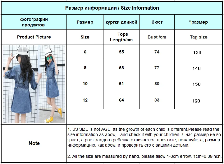 Джинсовое платье-рубашка для девочек от 4 до 12 лет, на осень