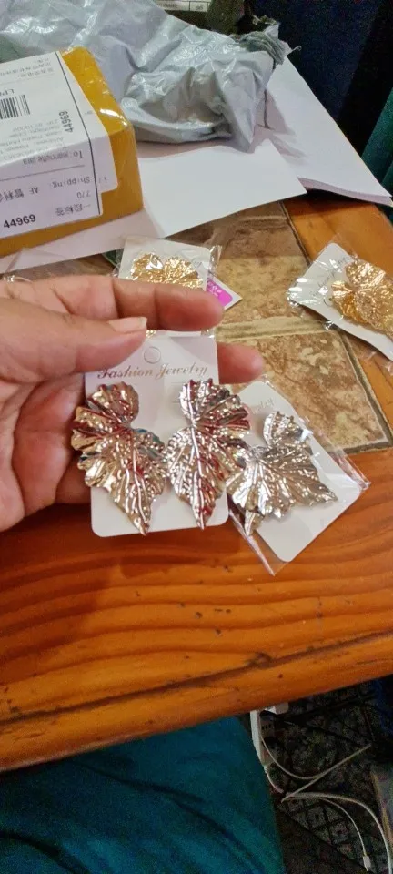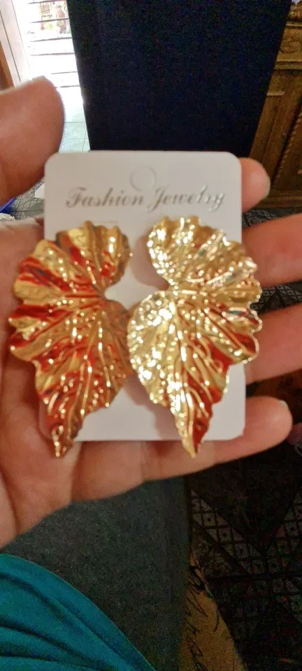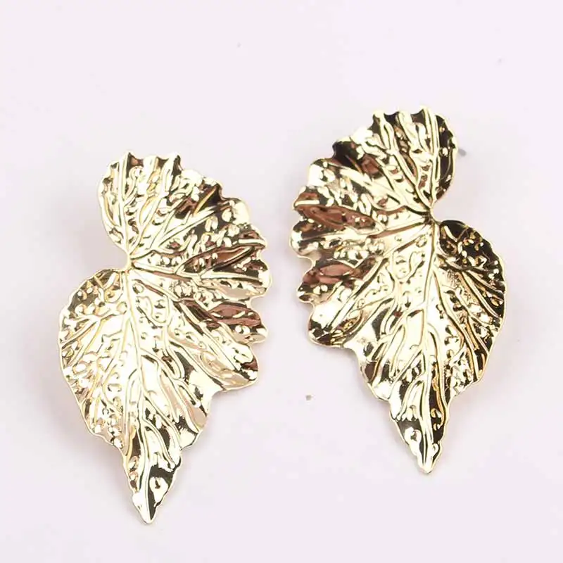 Женские серьги-гвоздики с большими листьями и цветами, массивное Ювелирное Украшение золотого и серебряного цвета в форме сердца, крыльев бабочки, 2019