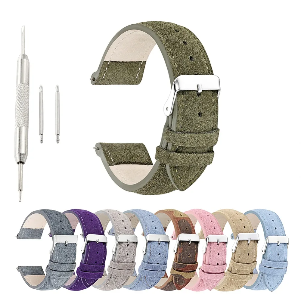 Ремешок для часов onthcelel из натуральной замши, аксессуары для женских часов, браслет из натуральной кожи, 18 мм 20 мм 22 мм 24 мм, серый синий розовый зеленый