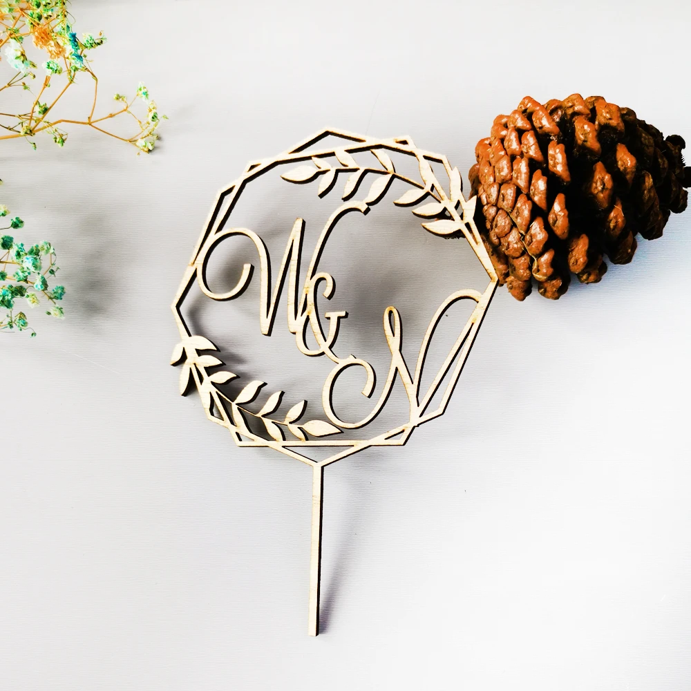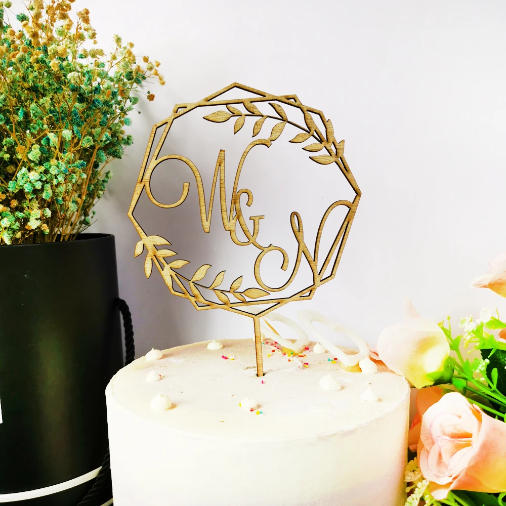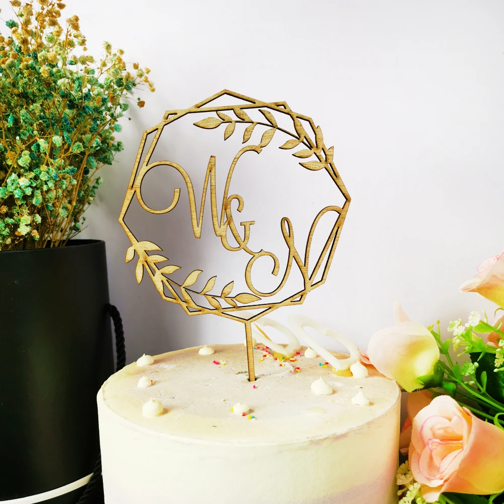 На заказ Mr And Mrs имя инициалы свадебный торт Топпер, персонализированные пары Свадебный декор, деревенский венок для вечеринок декор для юбилея
