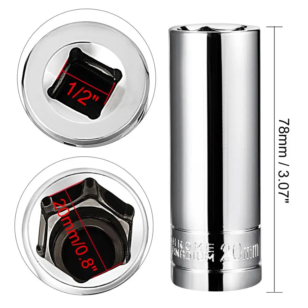 Uxcell Новое поступление, cr-v сталь, 12 дюйма, привод 20 мм 23 мм 30 мм, 6-точечная розетка, глубокая розетка для ручного изготовления DIY