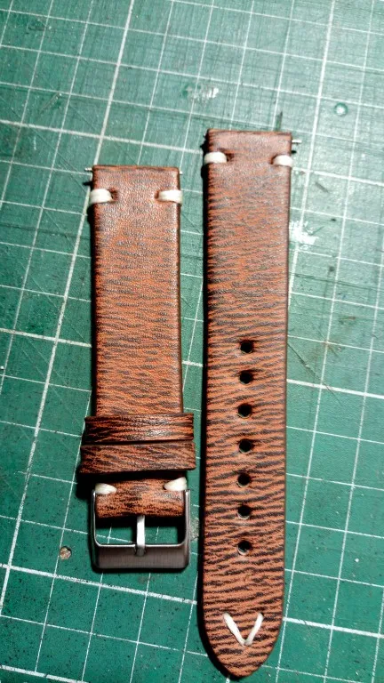 Быстрая доставка! Мягкий, но с резковатым запахом (надеюсь выветрится), пряжка не очень, но будет заменена. В целом нравится грубоватый дизайн и окраска кожи. Сделан из двух слоёв. Подбирался к определенным часам.