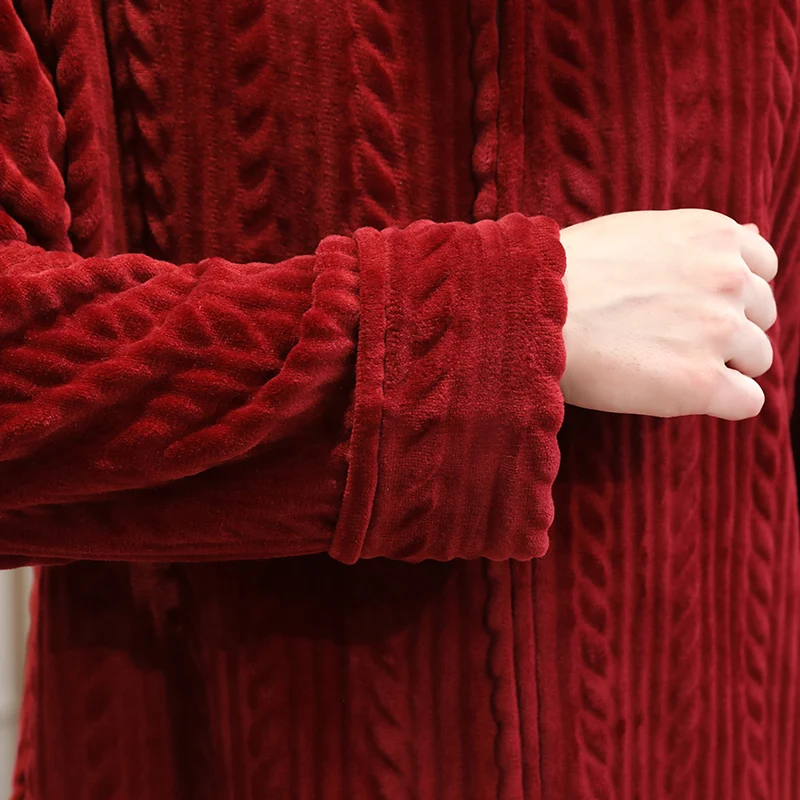 Женская и мужская длинная осенне-зимняя теплая однотонная Пижама до щиколотки с капюшоном кимоно для влюбленных винная ночная рубашка ночная одежда платье