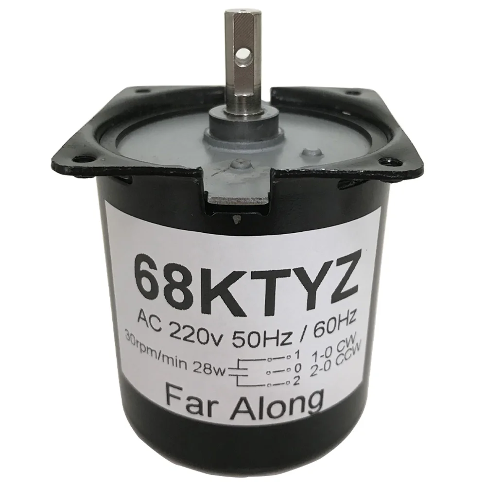1. Синхронный двигатель с постоянным магнитом 68KTYZ Mini 220 В переменного тока2. Двигатель имеет следующие варианты напряжения: 220 В переменного тока3. AC 220 В; Вы можете выбрать скорость холостого хода: 2,5 об/мин; 5 об/мин; 10 об/мин; 15 об/мин; 20 об/мин; 30 об/мин; 50 об/мин; 60 об/мин; 80 об/мин; 110 об/минНоминальный крутящий момент от 3 до 100 кгс. См; Выберите Скорость без нагрузки в AC 220 В, будет соответствующий Номинальный крутящий момент, пожалуйста, обратитесь к таблице параметров ниже.4. Направление вращения двигателя: CW и CCW; Поддержка обратная; Но скорость этого двигателя фиксирована, скорость не может быть отрегулирована.5. Мощность: 28 Вт6. Рабочая температура: Самая низкая температура-10 градусов Цельсия до самой высокой температуры 70 градусов Цельсия7. Отличительные особенности двигателя: двигатель представляет собой синхронный двигатель с постоянным магнитом; Внутренние металлические шестерни; Низкая скорость и низкий уровень шума 30 дБ; Поддержка непрерывной работы в течение 24 часов; Регулировка скорости не поддерживается ed; 5000 часов работы при нормальном использовании; Используется высококачественные материалы; Небольшой размер; Высокий крутящий момент; Низкое энергопотребление светильник вес и простота использования8. Область применения двигателя: Автоматическая Полка для барбекю; Автоматический обеденный стол; Машина для штор; Детская кроватка; Освещение сцены; Посудомоечная машина; Автоматическое управление и т. д.9. Что касается крутящего момента, размера, изображения продукта или другой информации о двигателе, пожалуйста, посмотрите следующую информацию. Спасибо