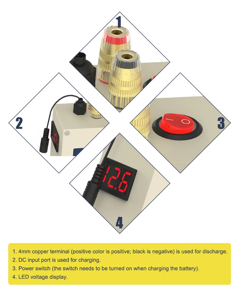 1. 12V 20AJ литиевый аккумулятор 2. 12,6 V 2A зарядное устройство 3. Один DIY gife линия