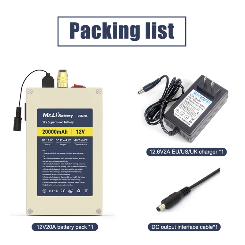 Перезаряжаемый литиевый аккумулятор Mr.Li 12 В 20 Ач со встроенной системой BMS для внешнего источника питания, бытовая техника, лодочный гидролокатор