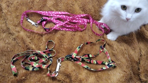 Хорошие поводки, на 120 см длина и на 4-5кг кошку, если кошка больше этого веса шлейка может не застягнуться. Ширина шлейки 1см, немного туговаты застежки. Вывод на небольшую кошку хорошо подойдёт, правда если она сильно активная неубодно будет ходить на длине 120см. Доставка пришла в срок все хорошо упаковано, все комплектующие целы.