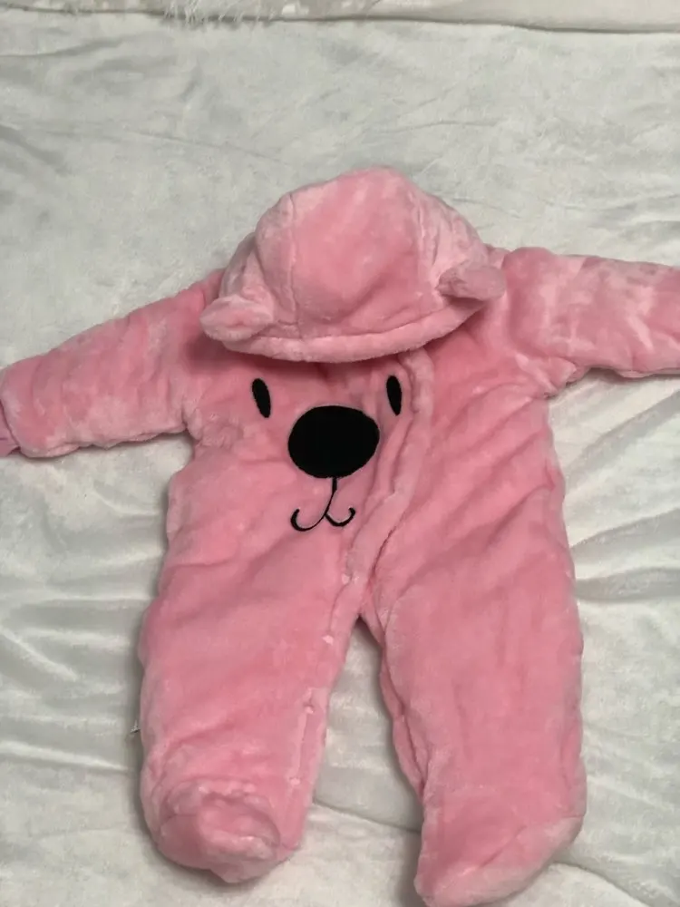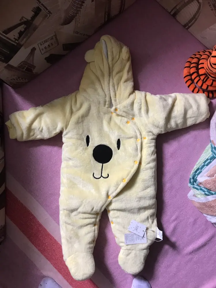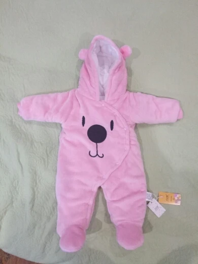 Очень теплый комбинезон. Wielkoszciowo будет хорошо для детей, у которых есть месяц или даже два. Нет плохого запаха. Идеально подходит для подарка. Для paczkomatu прибыл в течение 14 дней.
