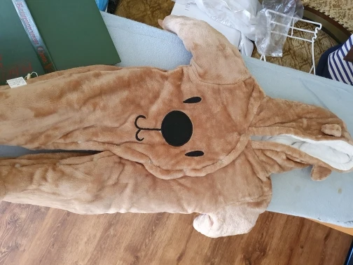 Плюшевый, мягкий комбинезон, брала размер на 59, но костюм большемерит. Доставка До Санкт-Петербурга около месяца.
