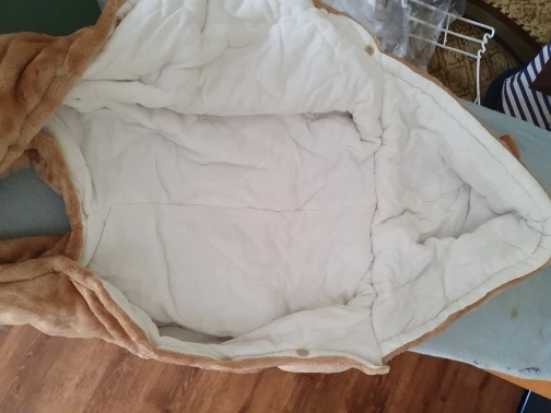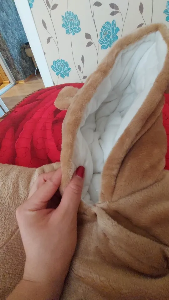 Очень хорошо, точно соответствует описанию с плюшевой подкладкой и подкладкой из очень мягкого хлопка, очень большой размер, 12 месяцев, длина 64 см и ширина 35 см, Доставка занимает 2 месяца