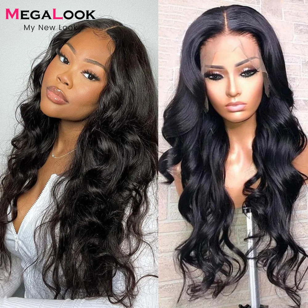Парик HD на сетке с волнистыми волосами, парик из человеческих волос на сетке спереди, бразильские парики на сетке спереди, предварительно выщипанные на сетке спереди, волосы Megalook remy