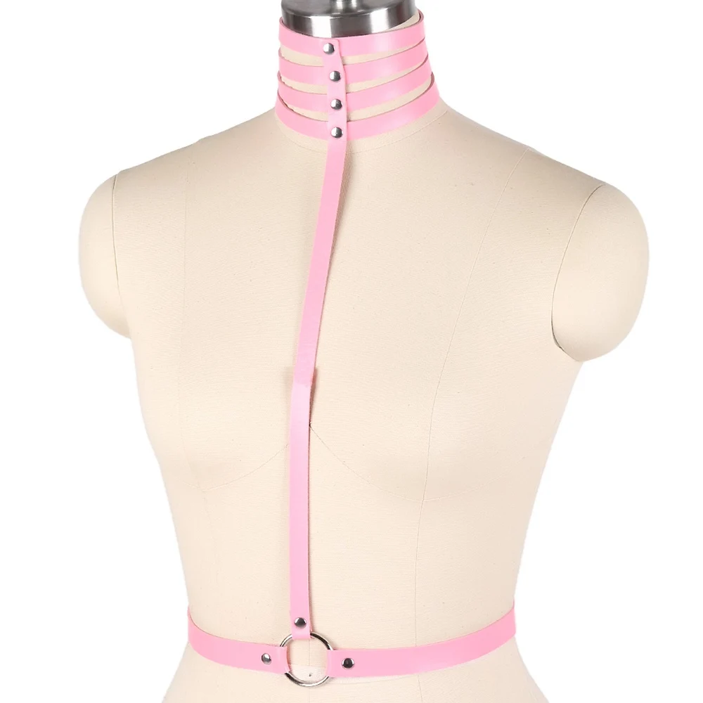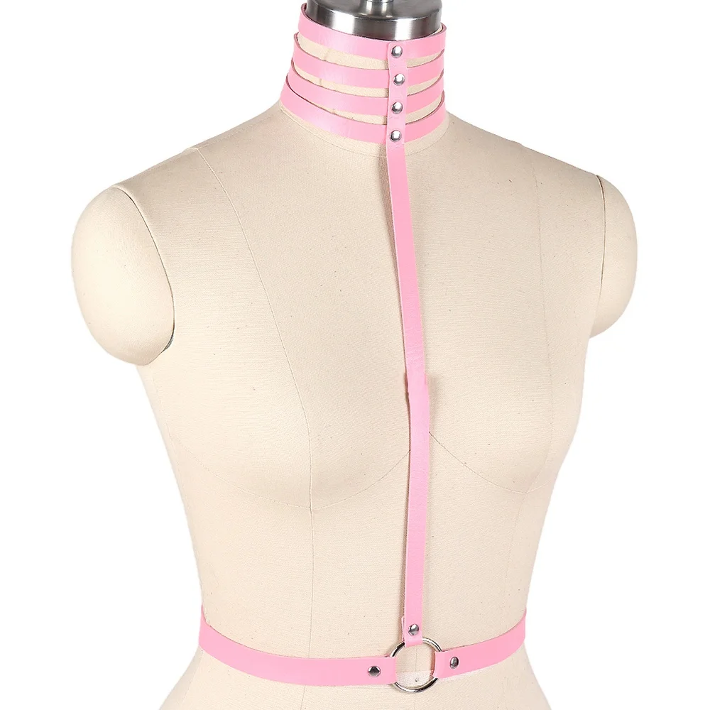 Розовый кожаный бюстгальтер с крылышками, сексуальное нижнее белье, пояс, фетиш, панк, готический организм, регулируемый Топ для бондажа, танцевальный клуб, Рейв для женщин