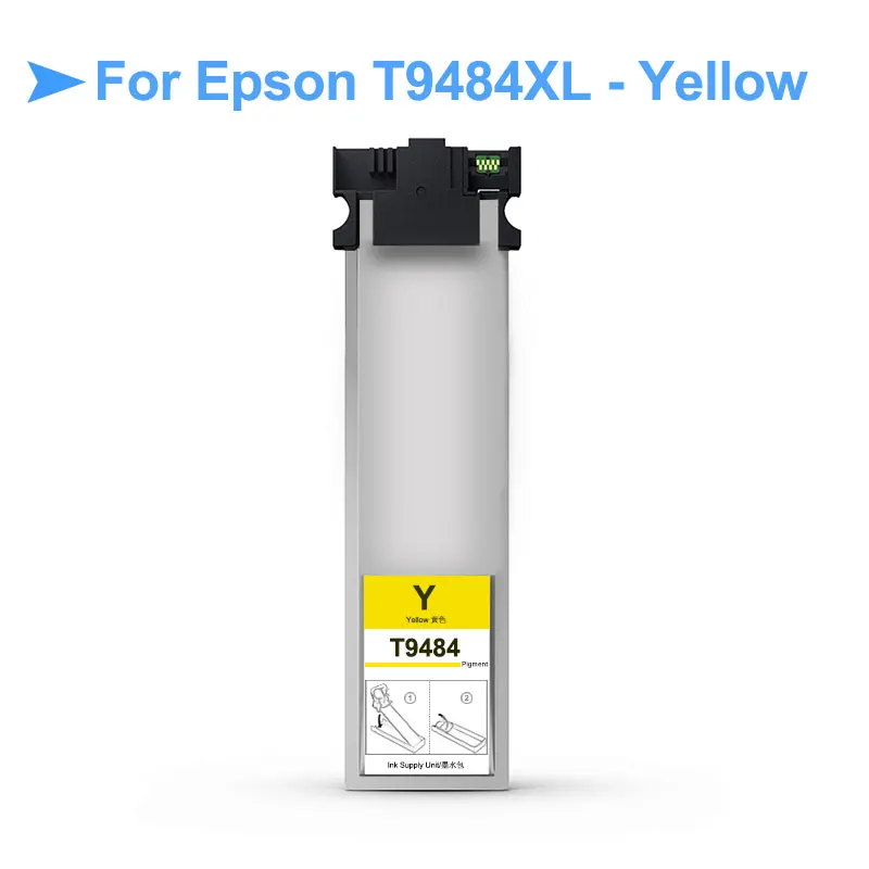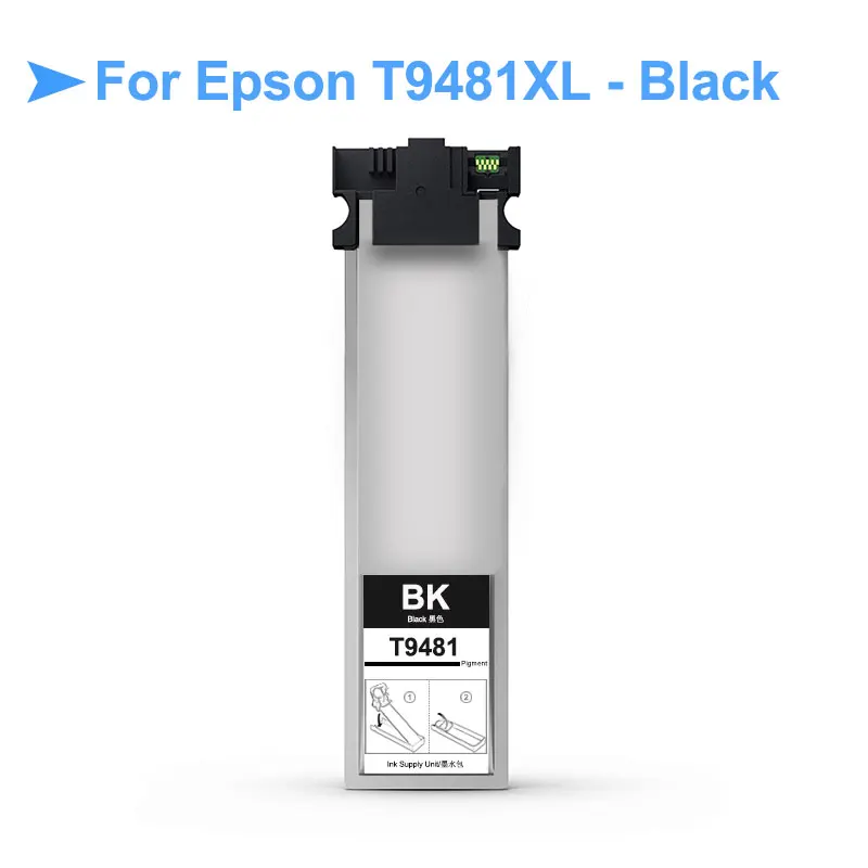 Особенности: 1. Высокая производительность для доступной печати большого объема. Тот же объем с оригинальным объемом, сделать большие печати. 2. Быстросохнущие пигментные чернила предназначены для высокоскоростных печатных работ. 3.Острый текст для профессионального качества результатов. Есть вопросы? 1. Какой тип этого мешка для чернил? Это одноразового использования чернильный мешок с одноразовая микросхема и быстрой сушки пигментными чернилами. Можно устанавливать и печатать напрямую. 2. Какие Чернила внутри, хорошо ли они печатаются? Чернильный пакет заправляется быстрым dring, который sepelized для этой модели. Цена ниже, чем Оригианл, в то время как хороший priting. Приносим больше затрат. 3.Мой принтер Epson WF-C5290 / WF-C5790 / WF-C5210 / WF-C5710, но не может быть использован? Чип чернильного мешка T9481 / T9482 / T9483 / T9484, который используется в Европе. Соответствующий OEM КОД C13T948140 / C13T948240 / C13T948340 / C13T948440. Если чип отличается от нас, наш чернильный пакет не может использовать на вашем принтере даже модель принтера.