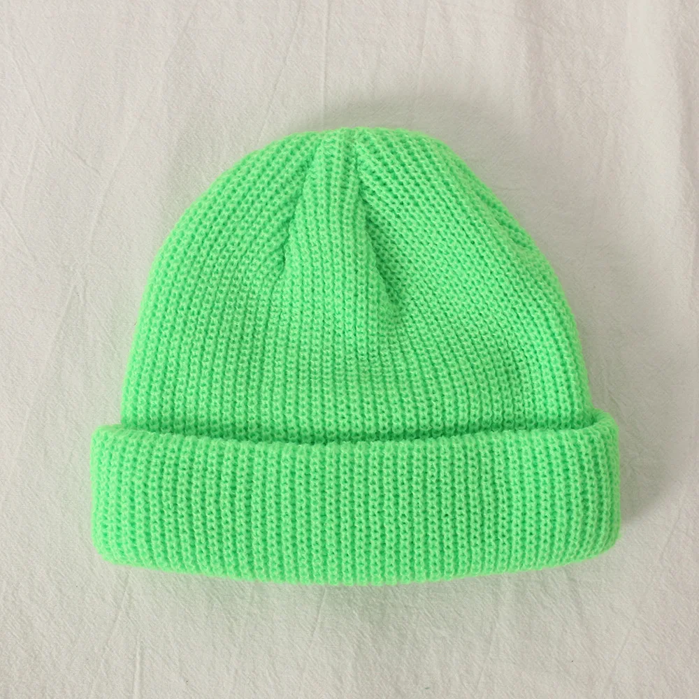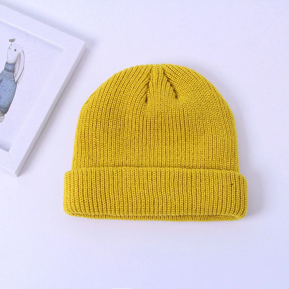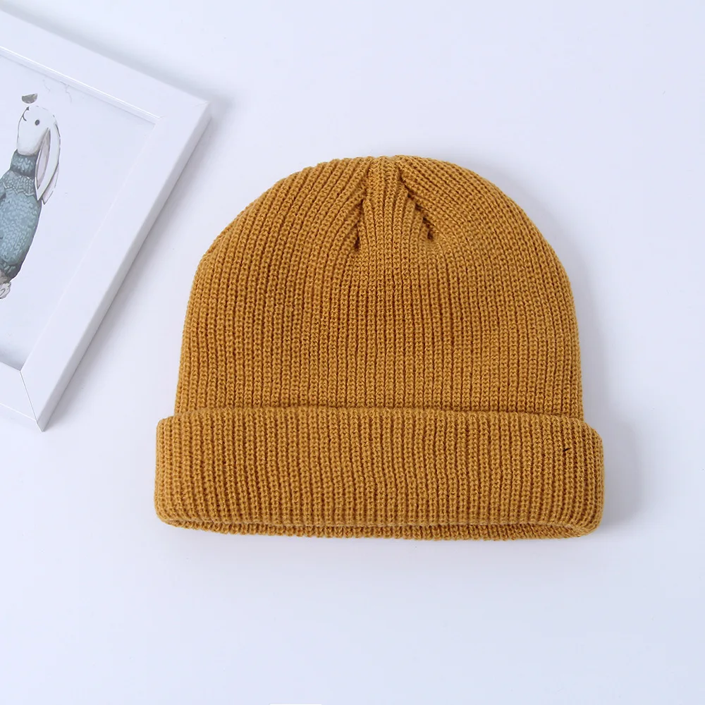 Зимняя вязаная шапка унисекс в рубчик с манжетами, короткая дыня, уличная однотонная шапка с черепом в стиле ретро, хип-хоп, шапка для рыбалки, Z65, мешковатая шапка