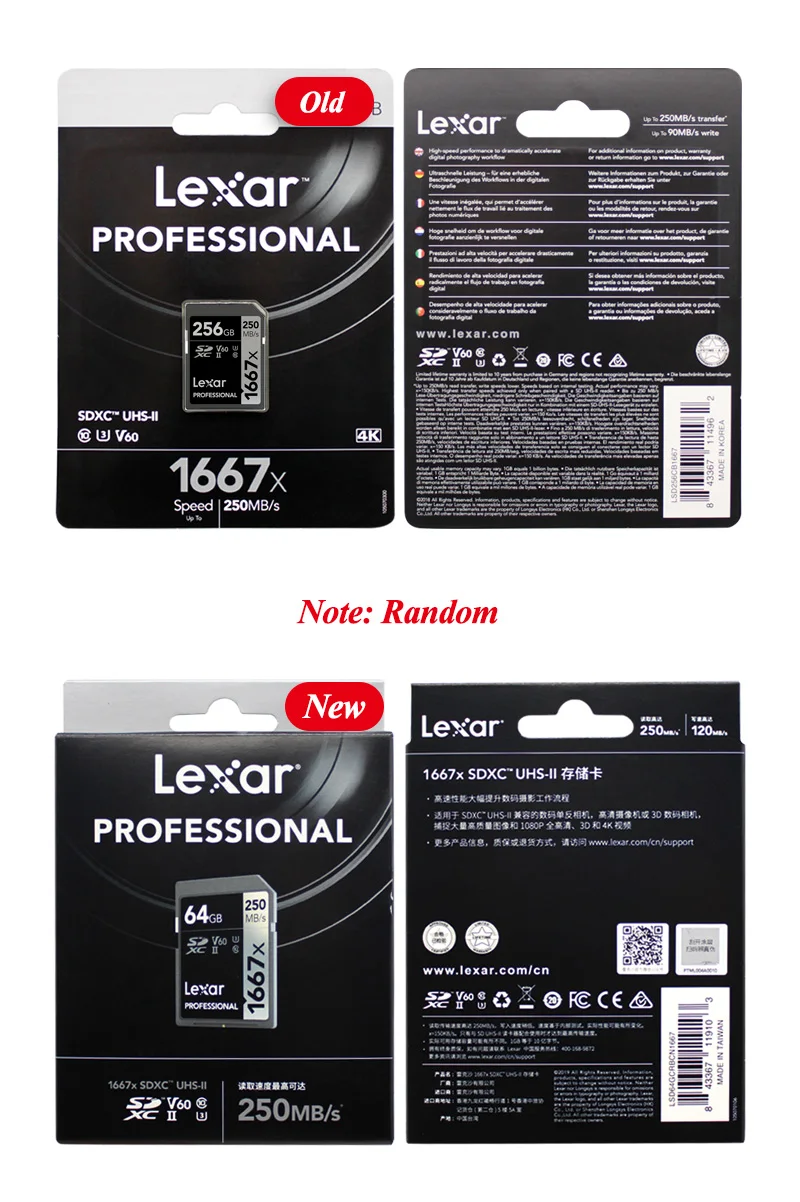 Оригинальная профессиональная sd-карта Lexar, 64 ГБ, карта памяти 1667x, 250 Мбс, флеш-карта 128 ГБ, 256 ГБ, SDXC V60 UHS-3, класс 10 для камеры
