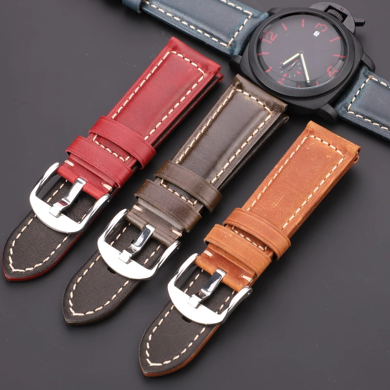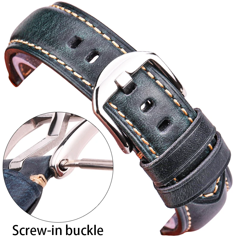 Бренд HENGRC браслет для часов из натуральной кожи 20 мм 22 мм 24 мм 26 мм синий зеленый красный коричневый ремешок для часов с серебряной пряжкой