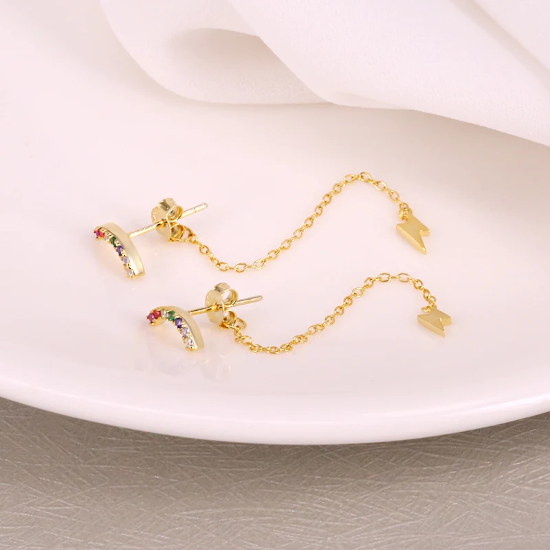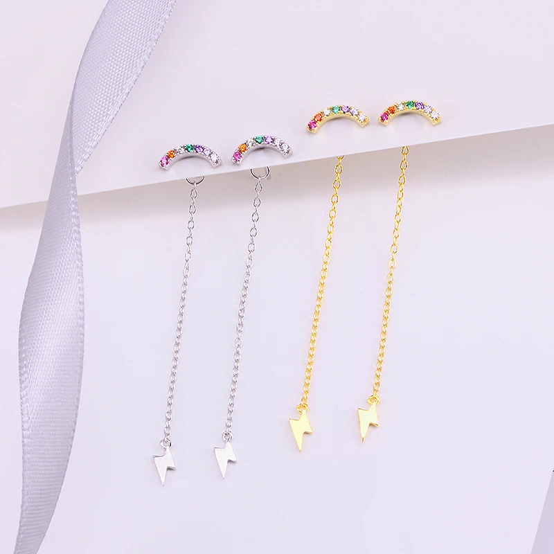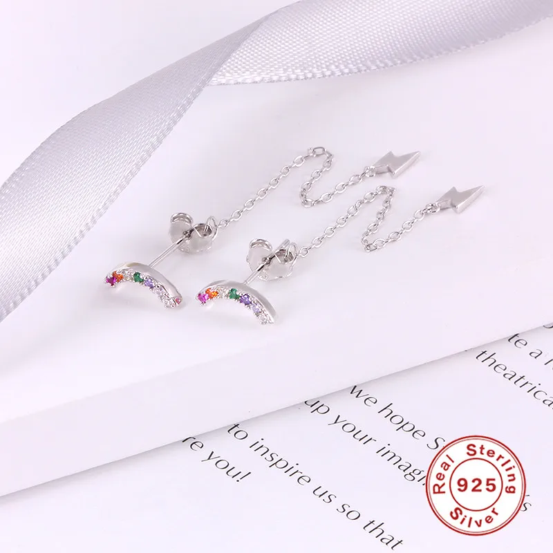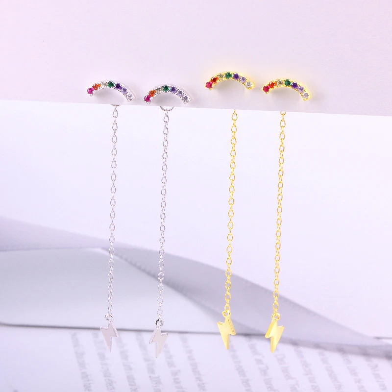 Женские серьги-подвески ROXI, корейские серьги с разноцветными радужными кристаллами, с волнами и молнией