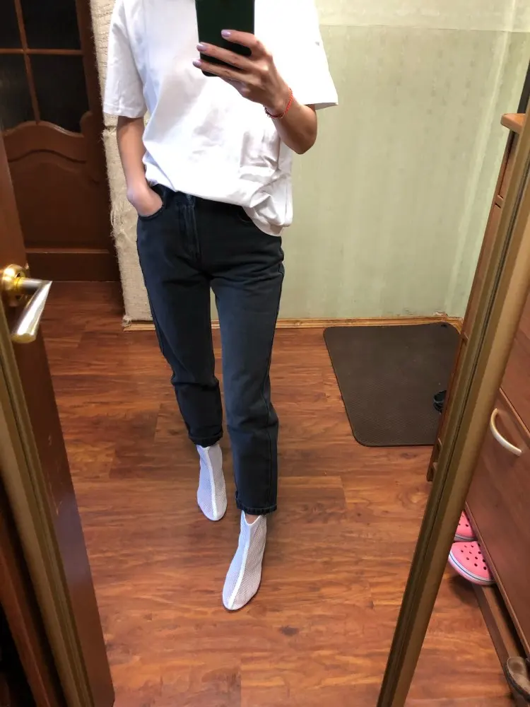 Это просто супер джинсы! Плотные, никакого стрейча, благородный серый цвет, отличный крой! Полный восторг! Жаль чуть коротковаты, но это модель такая. На 66-91 размер М сел плотно, в процессе носки чуть растянется конечно, но можно и побольше взять, чтобы сидели свободно.