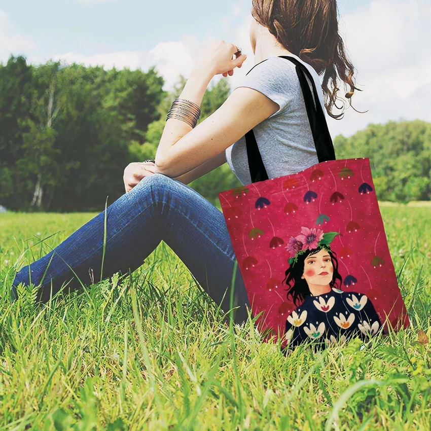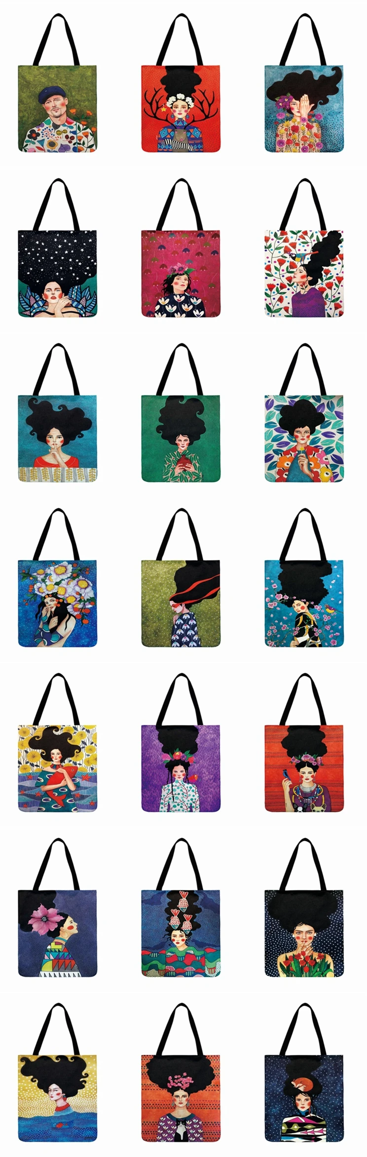 Льняная пляжная сумка-тоут с художественным дизайном для девушек, с принтом, Дамская многоразовая сумочка на плечо, сумки-шопперы для женщин