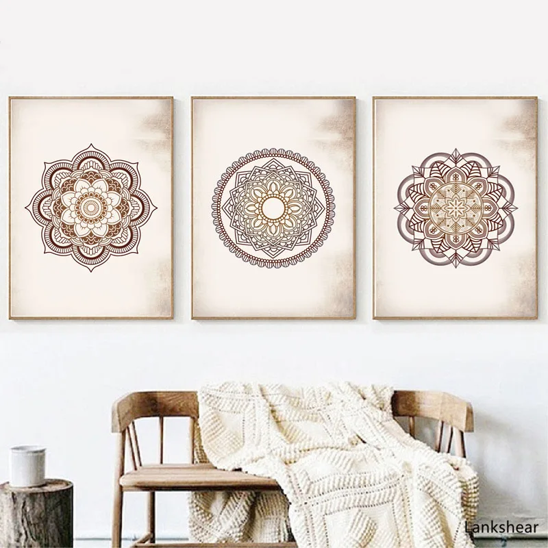 Настенные художественные принты, коричневый декор для спальни, мандала, коричневый холст, настенная живопись...