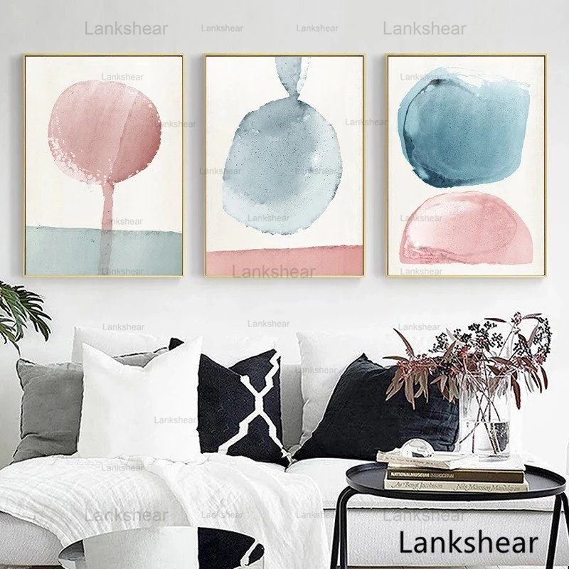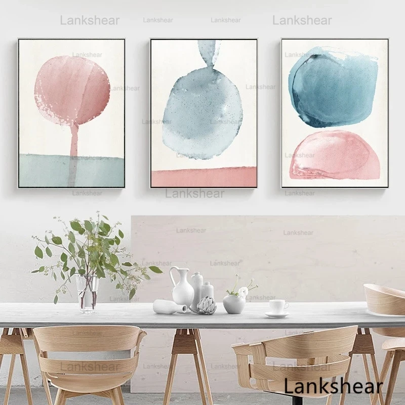 Скандинавский стиль розовый и темно-синий настенное искусство абстр...