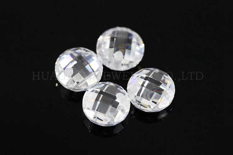 Белые кубические циркониевые камни круглой формы с плоским дном шах...