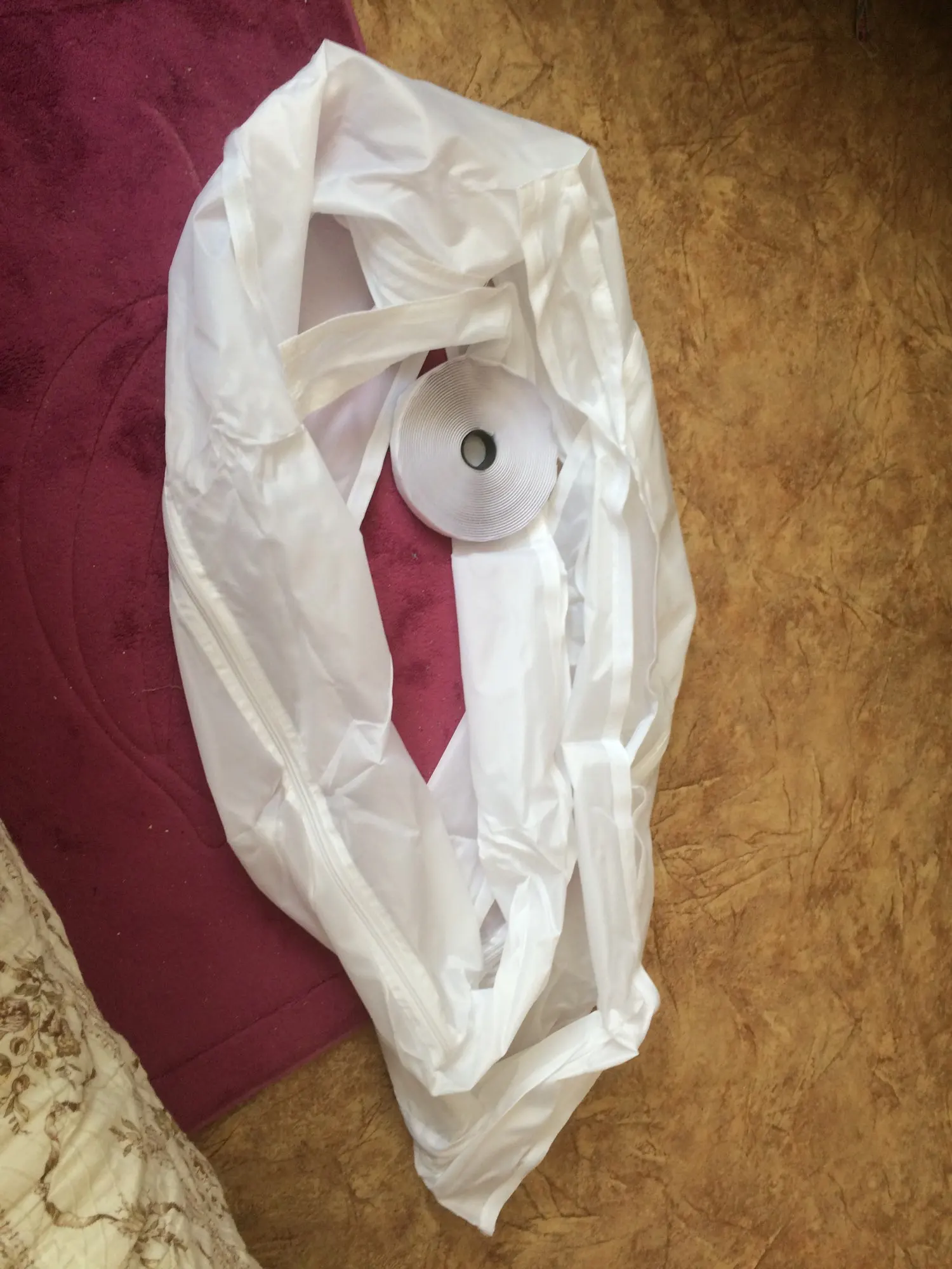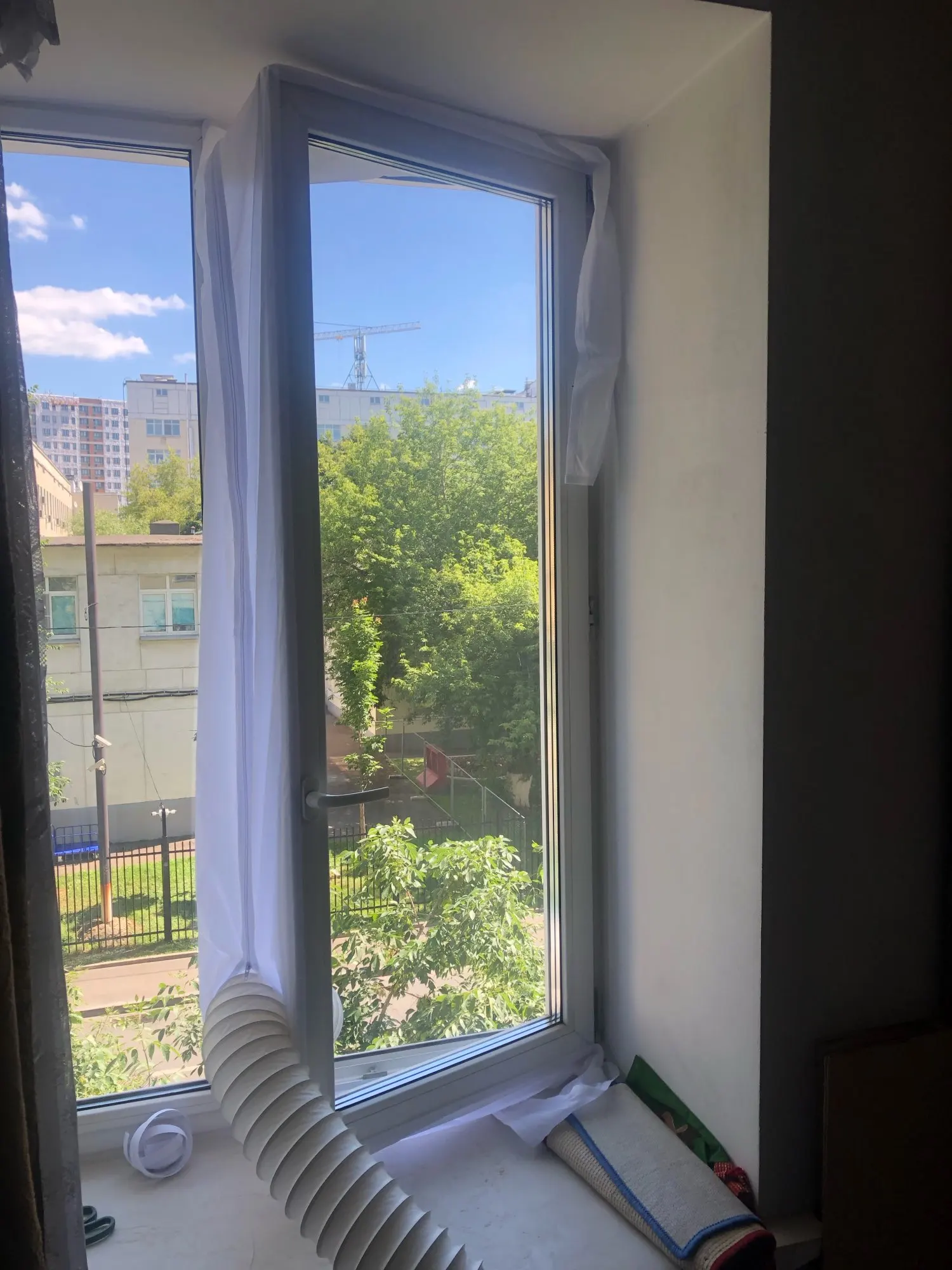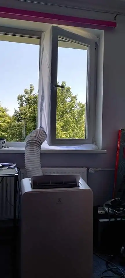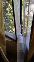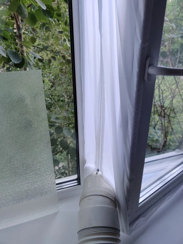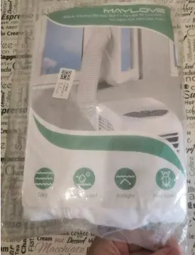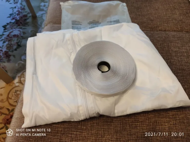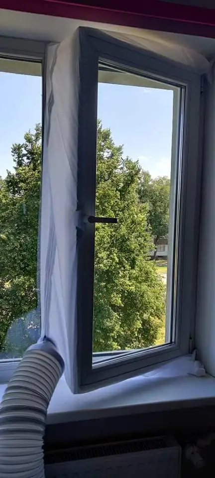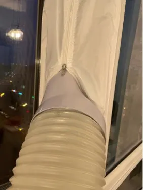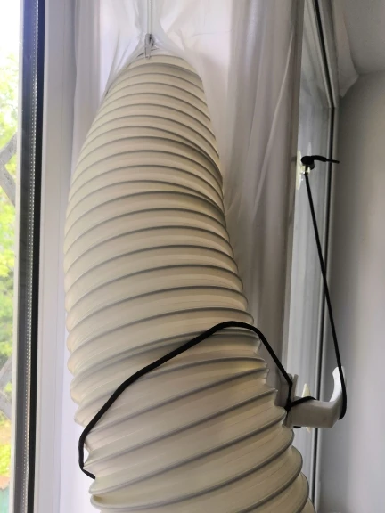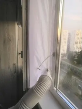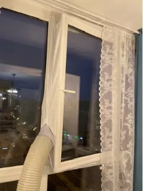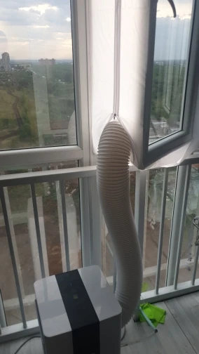 Довольно долгая доставка. Материал похож на дождевик, воду и воздух не пускает, раздувается если на улице ветер. Легко устанавливается, воздух не пускает. Мобильный кондиционер стал значительно лучше охлаждать. Достойная штука.