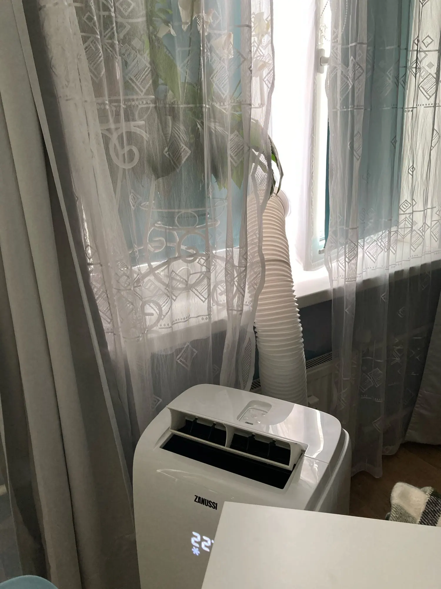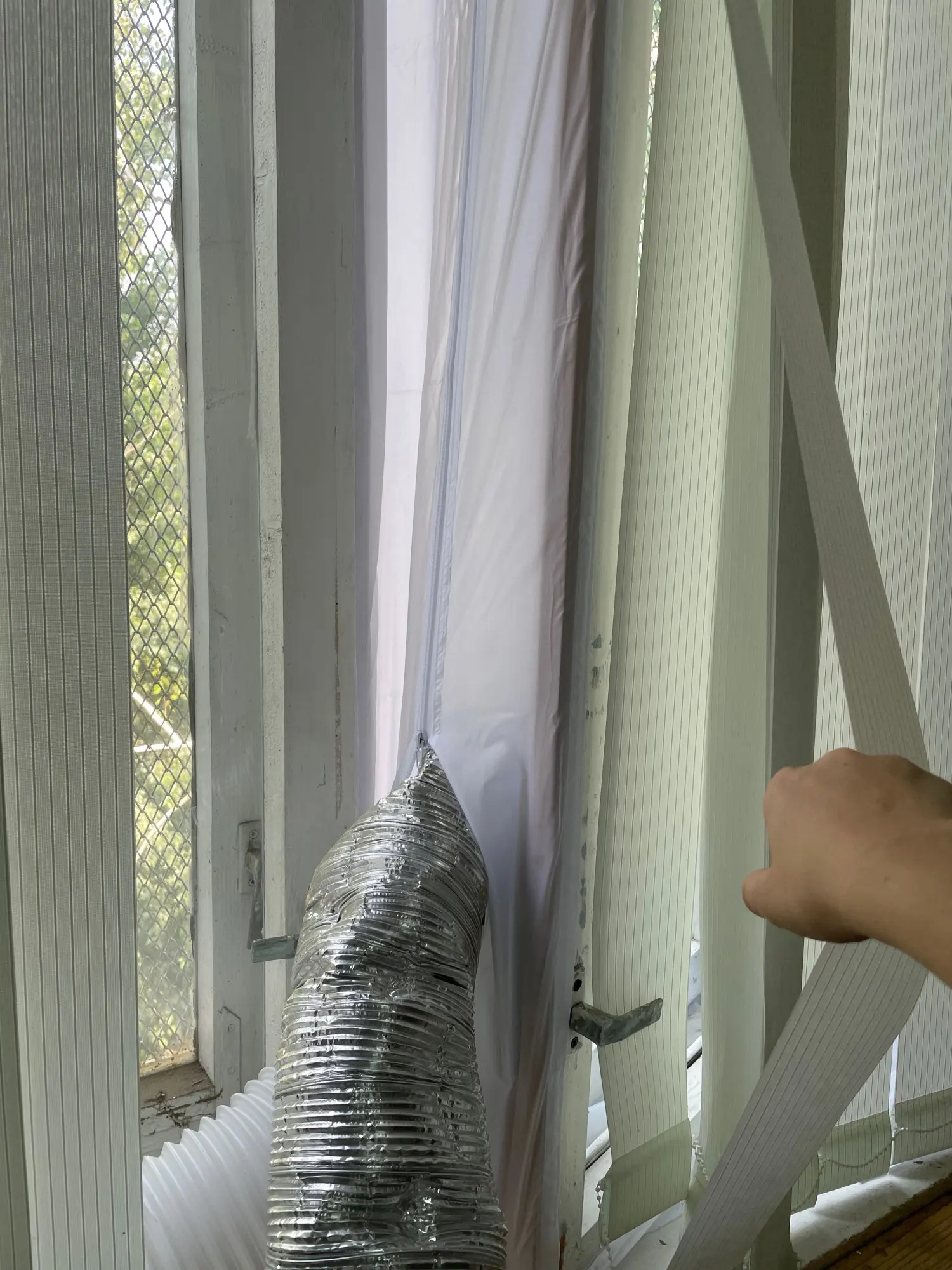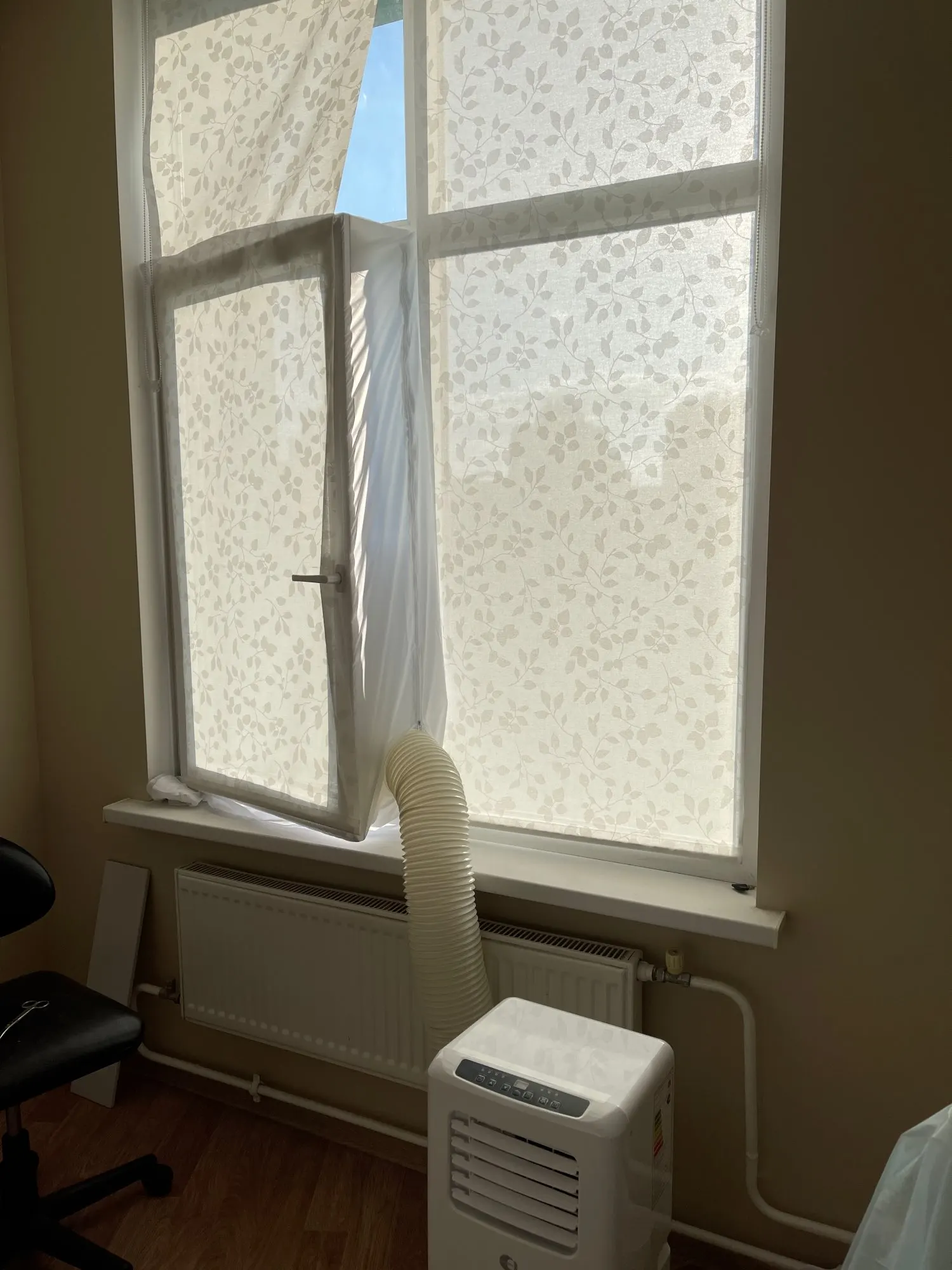 Довольно долгая доставка. Материал похож на дождевик, воду и воздух не пускает, раздувается если на улице ветер. Легко устанавливается, воздух не пускает. Мобильный кондиционер стал значительно лучше охлаждать. Достойная штука.