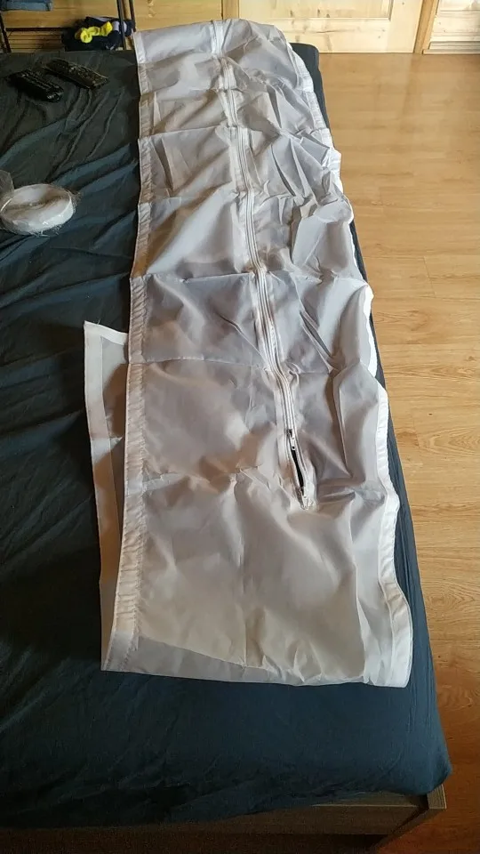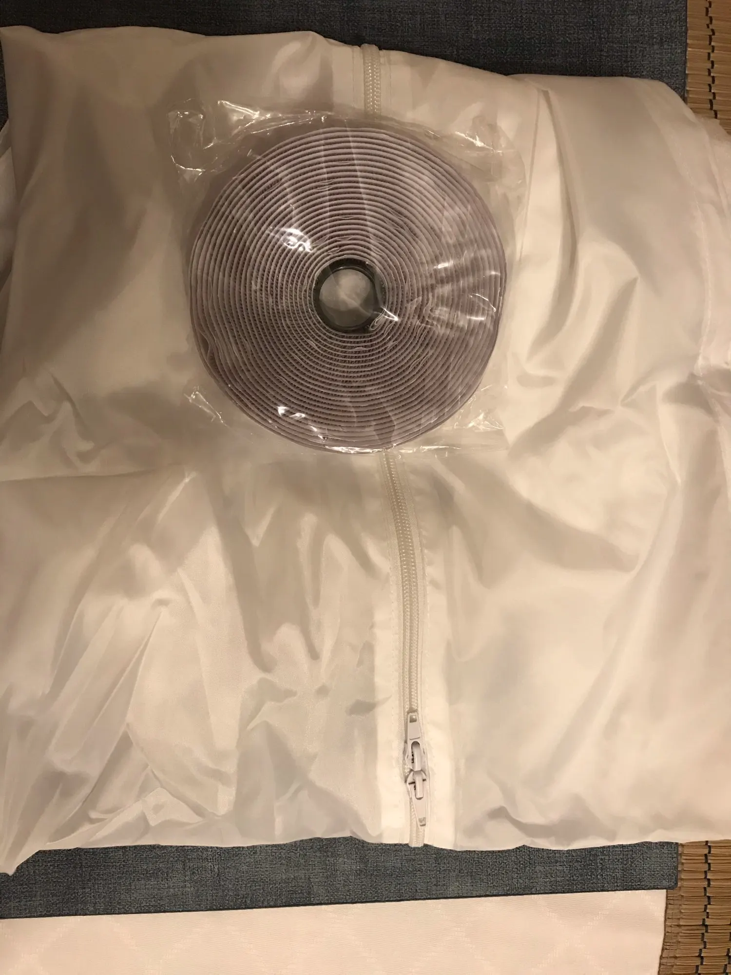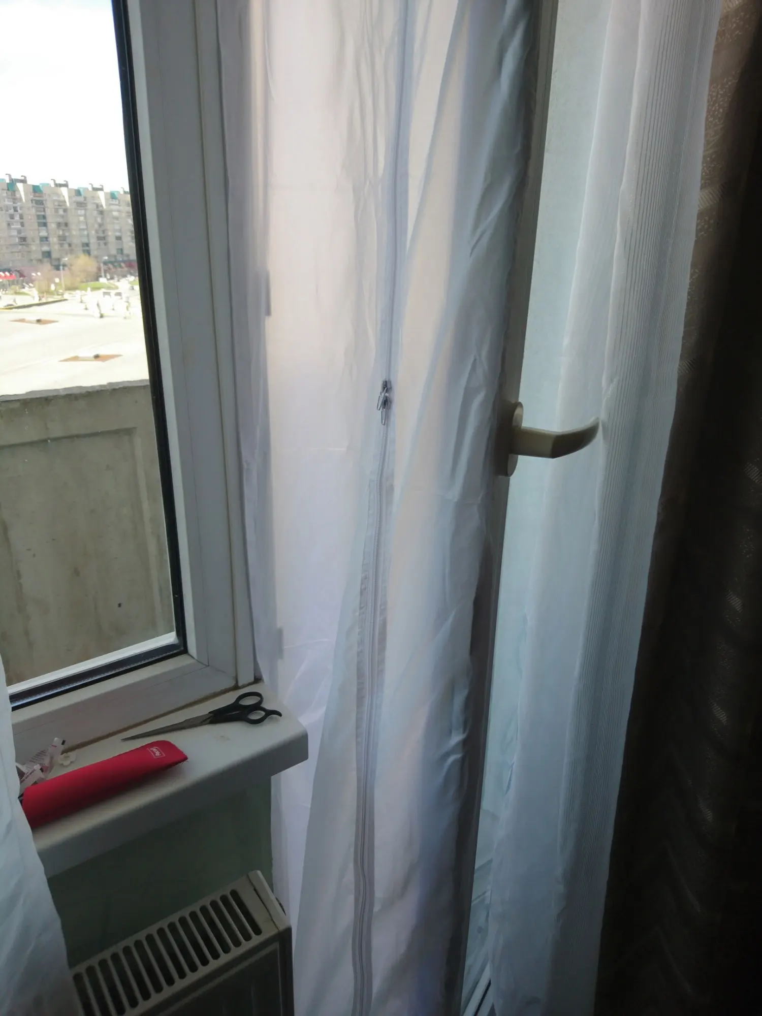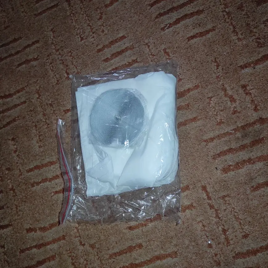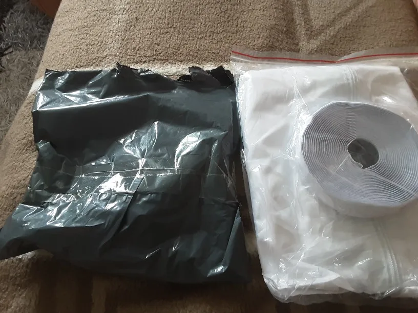 Получается, что это самая быстрая доставка, которая была на AliExpress, две недели. Грубо говоря, это прямоугольный лоскут из прочного материала с замком по середине, поэтому если окно открывается в сторону то длина этого куска должна быть равна сумме длин двух верхних сторон окна и одной высокой стороны, можно если будет чуть меньше плотно, чем получившаяся сумма, потому что уголки между створкой окна и рамой не так важно закрывать. Штука простая, может сделать сам кто угодно, но в принципе полезная.
