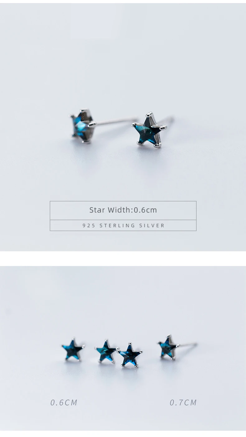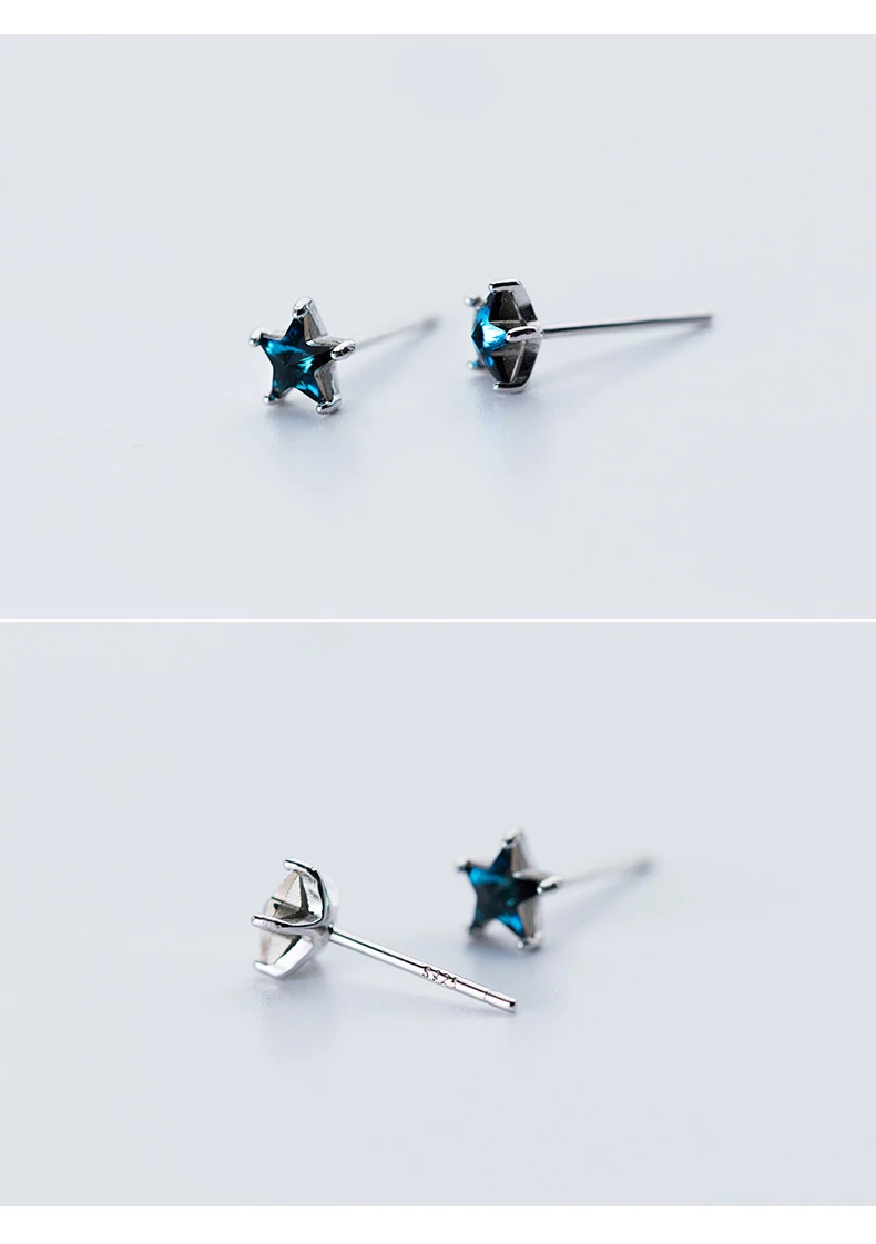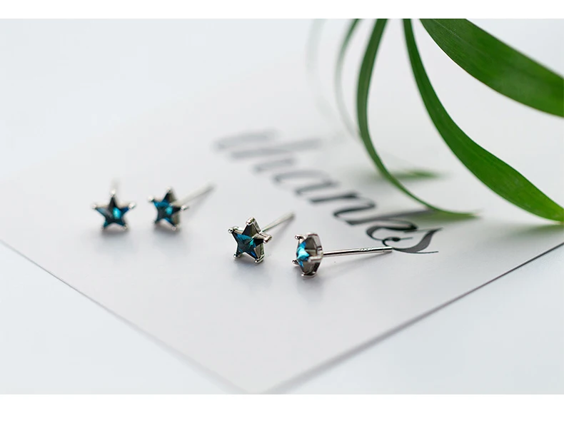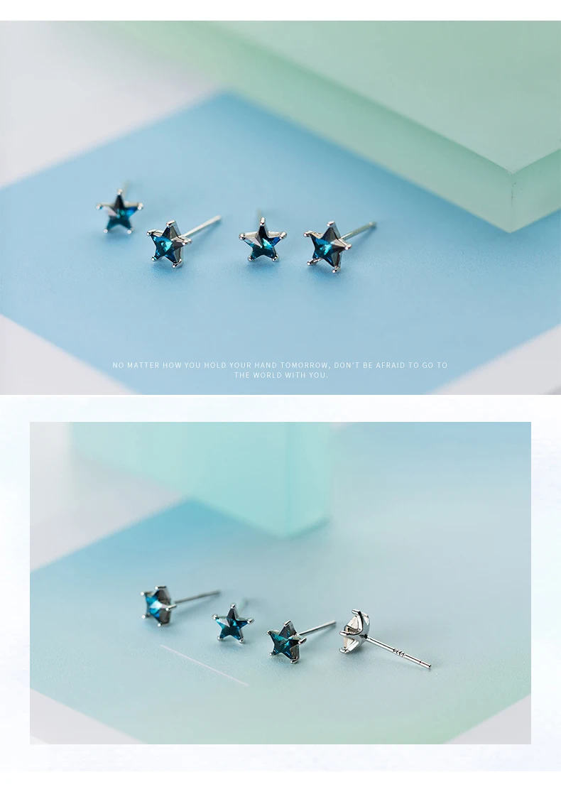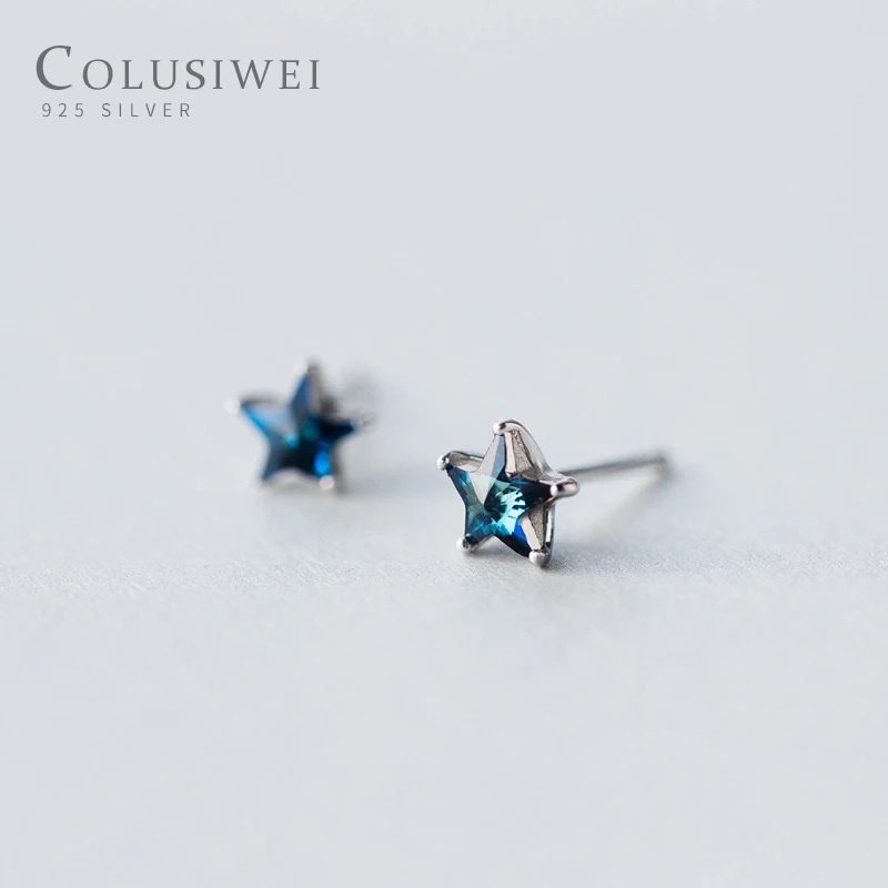 Colusiwei Синий Хрусталь звезда серьги гвоздики для женщин 925 стерлингового серебра тайна звезды уха шпилька корейская мода ювелирные изделия
