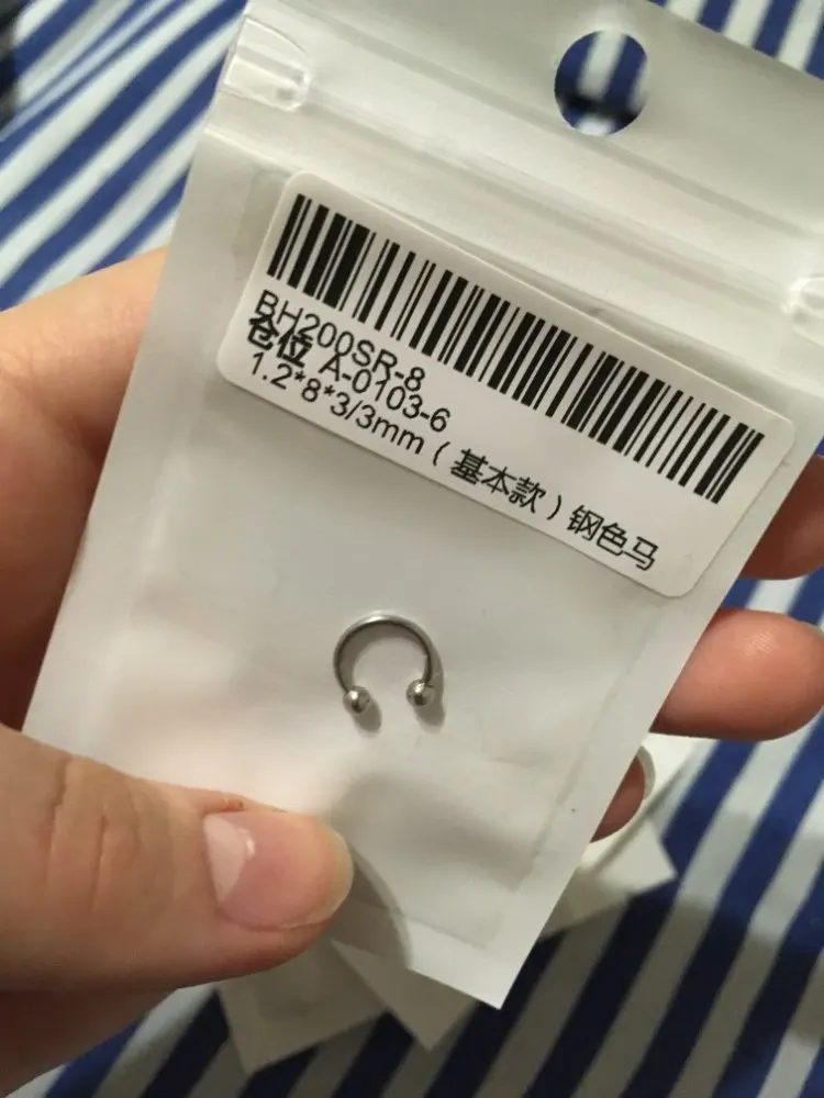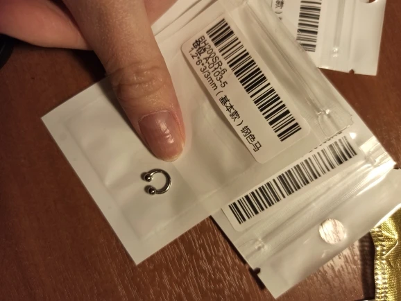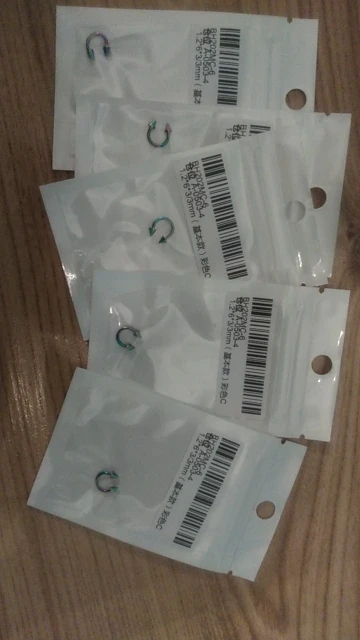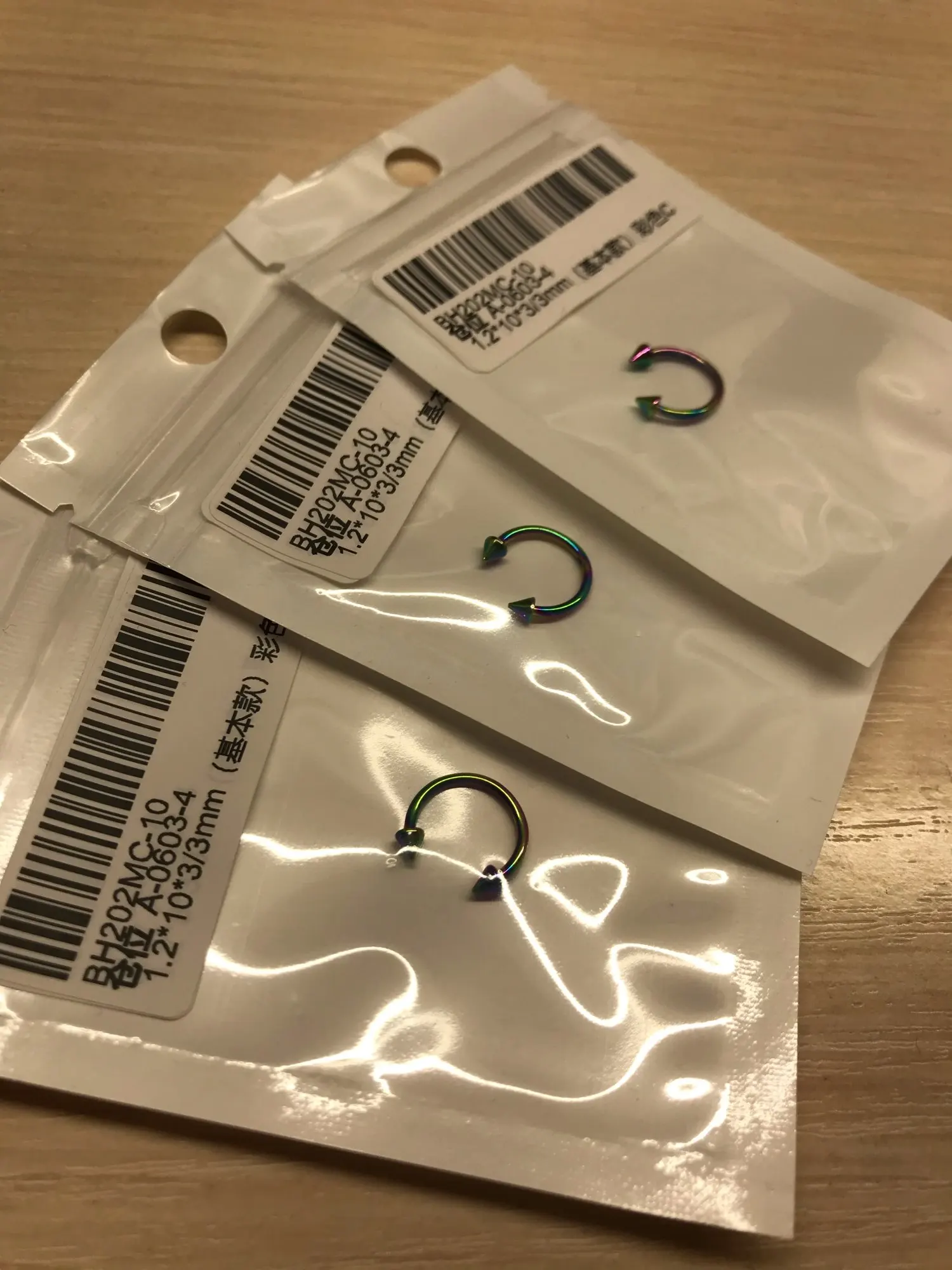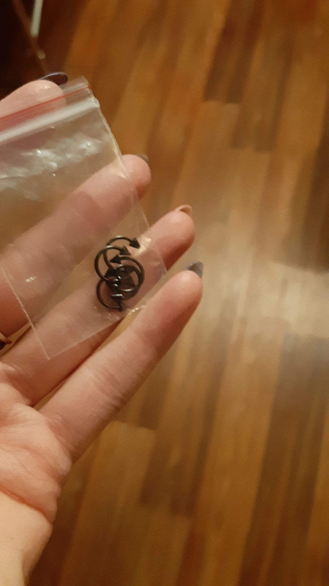 Все хорошо, только у меня было маленькое кольцо (10 мм), этот немного великоват, и он не совсем 10 мм, это видно на фото (это и мой старый пирсинг на каждой фотографии). Я надеюсь, что это будет как старый, один и тот же размер .. Все подошло в хорошем состоянии.