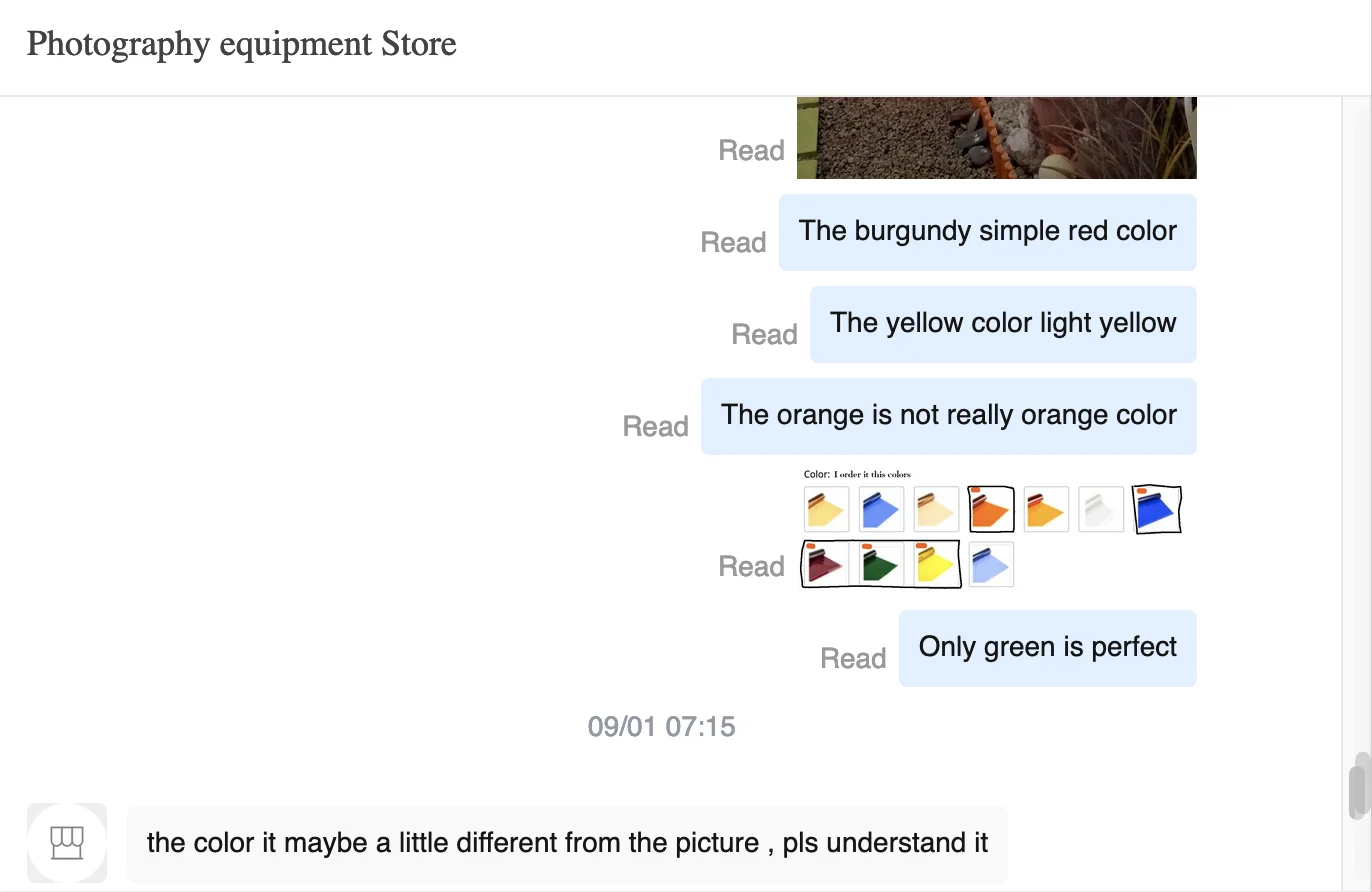Я создаю собственные видео на youtube. Качество почти такое же, как качество и уровень кинофильма. Я пользуюсь высококачественным студийным оборудованием. Мой студийный свет 95 + 97 CRI Осветляющий свет очень близкий к реальным цветам. Я заказываю этот товар по этой цене и получил его следующим качеством. См. Фотографии. В любом случае, я заказываю в то же время 5 разных цветов, я получил его 4 последний синий по-прежнему в пути. Я заказываю яркие темные цвета, и продавец отправил мне светлые цвета. Я не рекомендую этот товар только зеленого цвета. Остальные цвета на 35-60% легче, чем на фотографии рекламы. Когда я спрашиваю продавца, что такое решение, потому что я действительно недоволен этими цветами. Его ответ мне следующий. "Цвет может немного отличаться от изображения, пожалуйста, поймите это" Поэтому вы выбираете заказать его или нет. Я надеюсь, что эта информация поможет. Не тратьте деньги и время. Проверьте изображение.