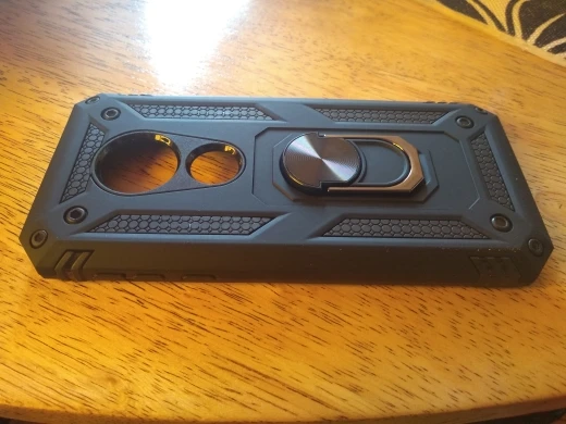 досить не поганий футляр. рекомендую. колір дещо темніший ніж на фото. трішки "дубовий", більше пластиковий ніж силіконовий. приємний на дотик. добре тримається на телкфоні. не ковзає. зручне кільце для тримання, добре фіксується, не теліпається