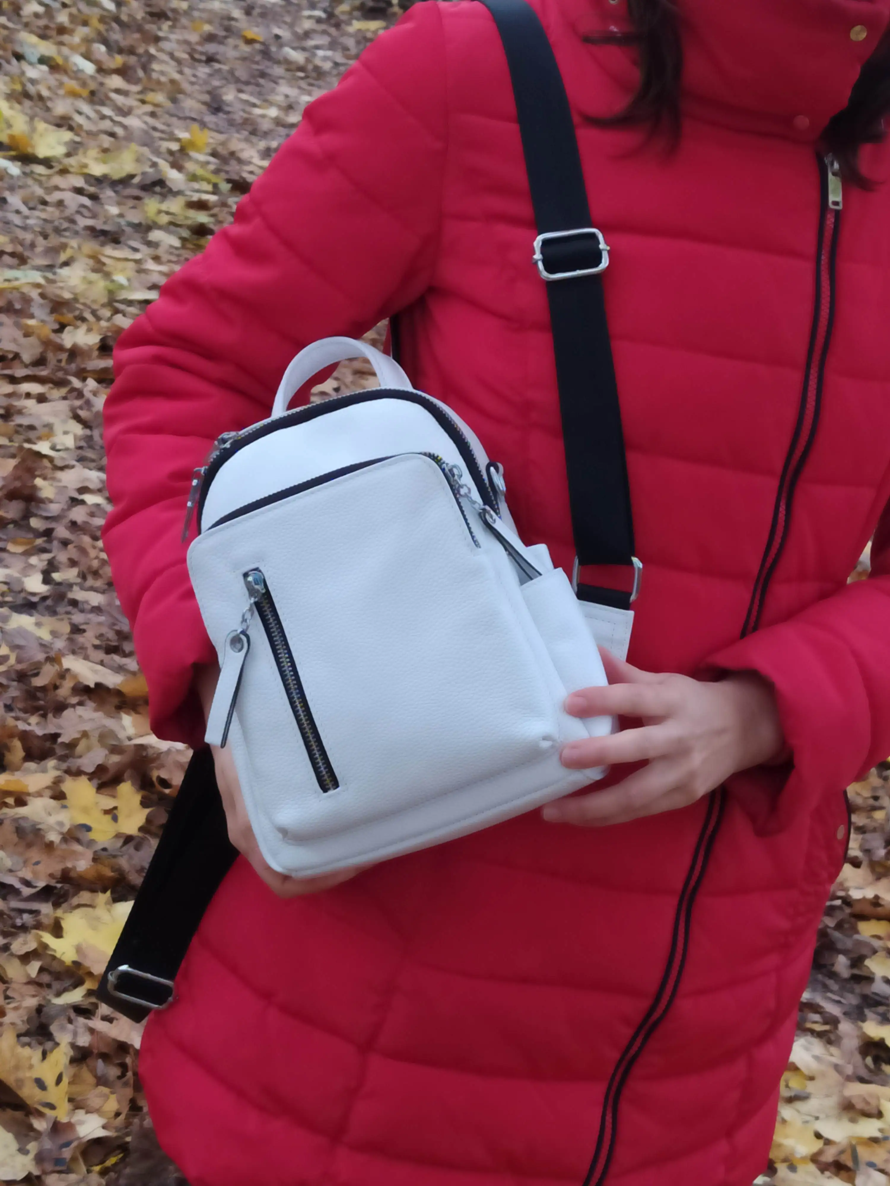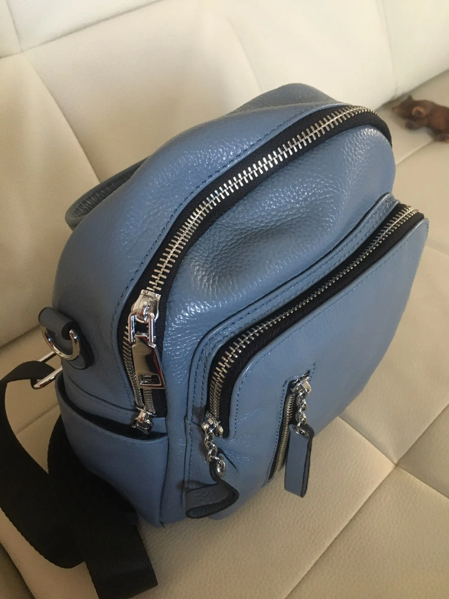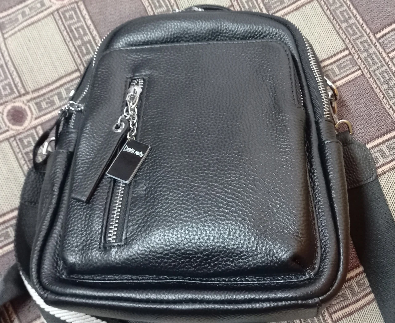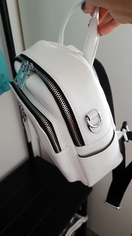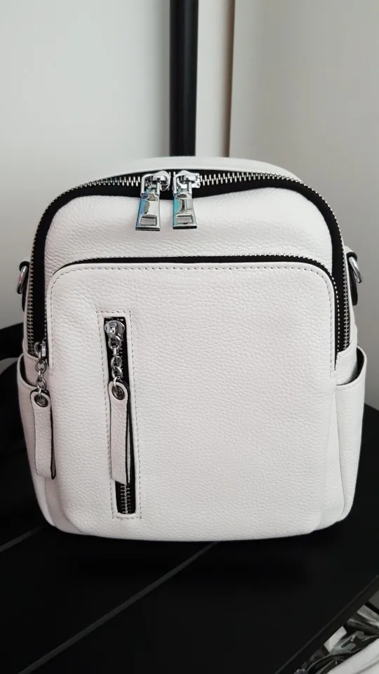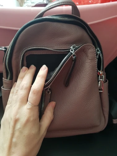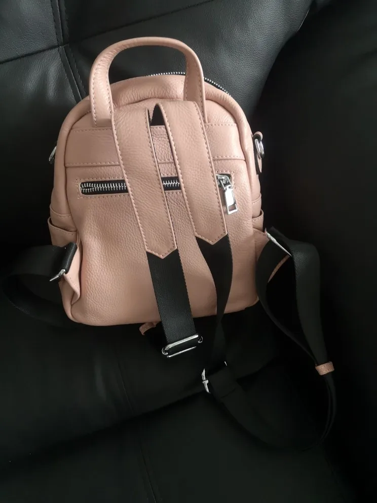 Рюкзак суперский. Кожа натуральная. Фурнитура вся качественная. Внутри два кармашка на молнии и два небольших кармашка под телефон и мелочь разную. Есть ремень, чтобы носить как сумку. Думала, что размер будет чуть больше, но в принципе и такой нормально. Длинный кошелёк, телефон, ключи, салфетки и мелочь разная входят. Дошёл быстро, 11 дней.