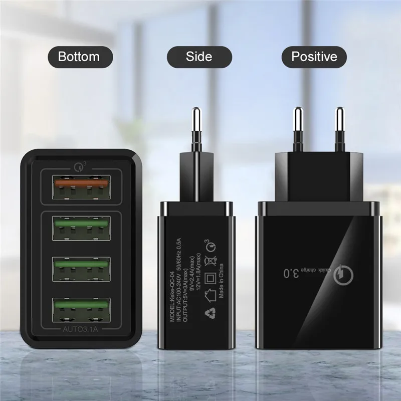2. С 4 usb-портами (зарядное устройство с функцией быстрой зарядки 3,0 и 3 порта USB 5V/3,1 а (макс.), Зарядка 4 устройства одновременно.