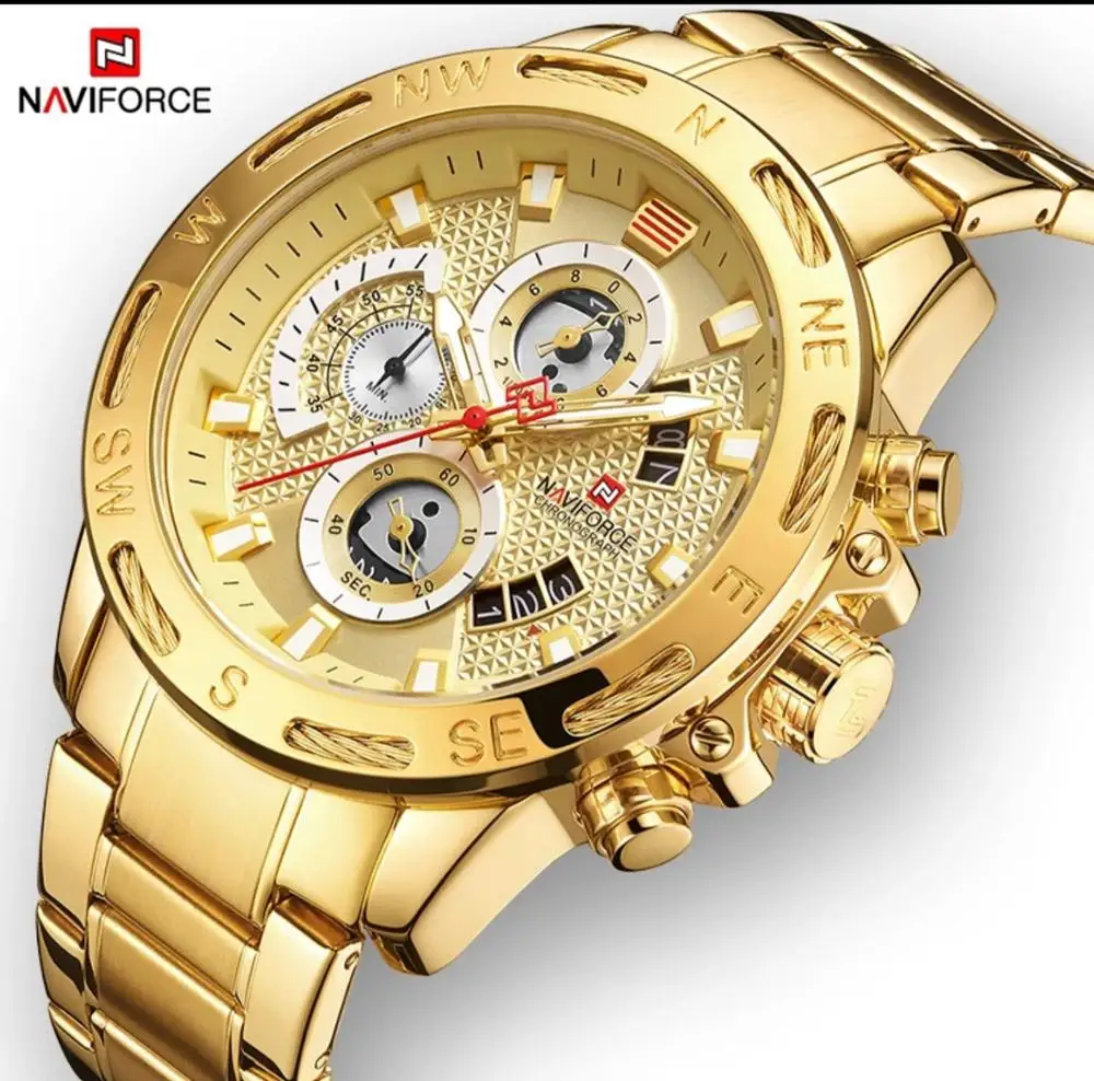 NAVIFORCE мужские часы спортивные водонепроницаемые из нержавеющей стали, модные роскошные золотые часы с датой, кварцевые наручные часы, мужские часы