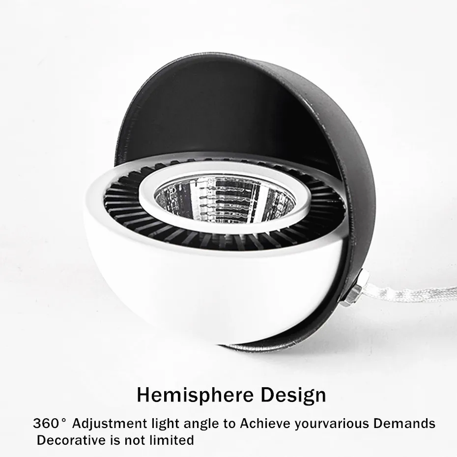 Цвет корпуса: черный, белыйМощность: 5 Вт 7 Вт 10 Вт 12 Вт 18 ВтСветовой поток: 110 лм/ВтУгол свечения: 45-60 градусовРегулируемый угол светильник: 360 градусовЦветовая температура: теплый белый (3000-3500K), натуральный белый (4000-4500K), белый (6000-6500K)Содержимое упаковки:1 * Светодиодный потолочный светильник1 * Светодиодный драйвер
