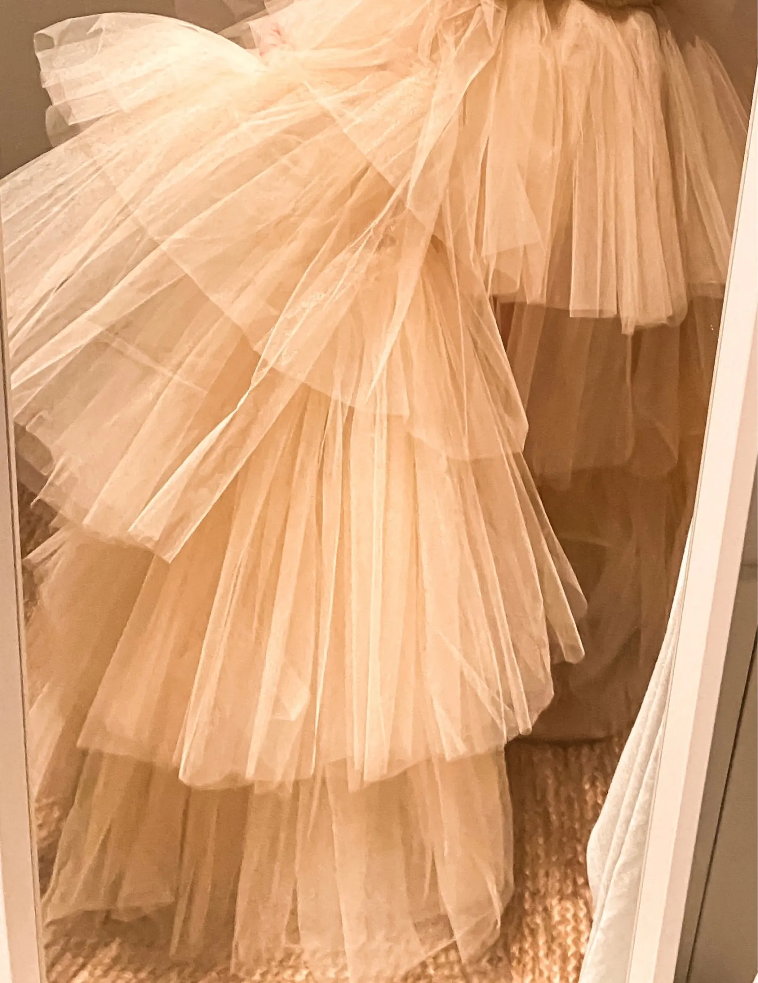 Идеальная юбка, цвет немного больше лосося, чем бежевого, но она идеальна, только они взяли с меня 25 евро больше за таможню.
