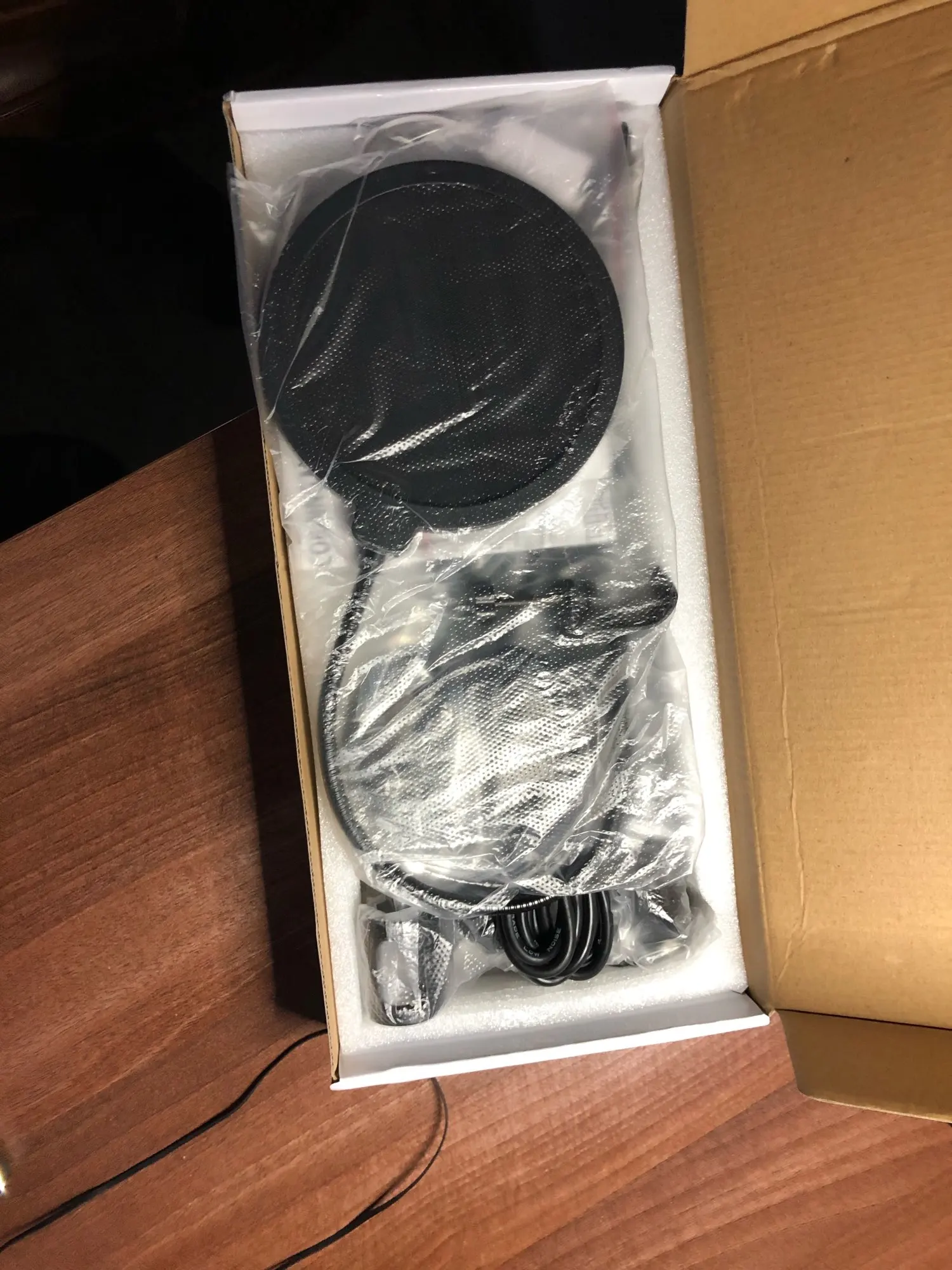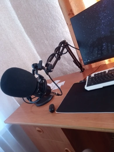 Микрофон пришёл максимально быстро, упаковка идеальна, всё цело, микрофон внешне выглядит крайне привлекательно. Пришлось повозиться с настройкой, но оно того стоило: звук чёткий, без посторонних шумов, даже бархатный какой-то. Муж счастлив, говорит, что почти на уровне профессиональных микрофонов, а ему не с чем сравнивать. Большое спасибо продавцу!