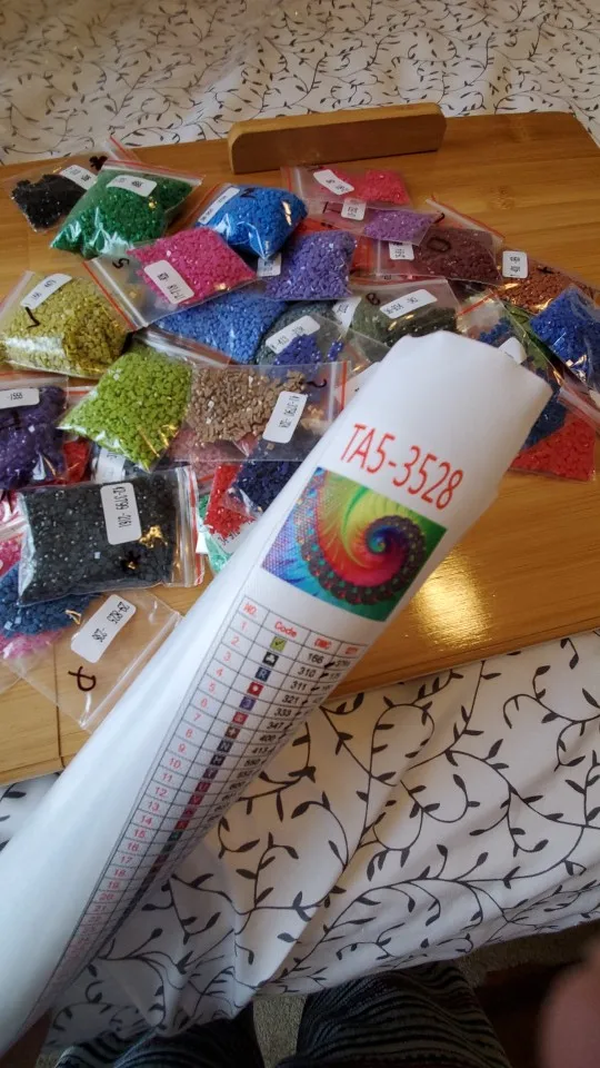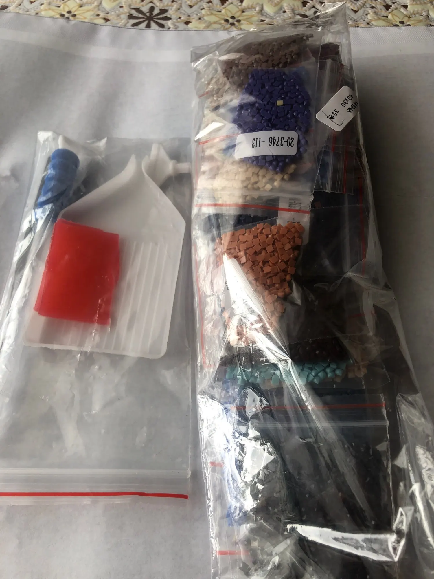 Доставка 12 дней. Брал самую большую картинку 60*80. Холст был накручен на паролоновую кишку и упаковано всё в картонную коробку. Такое ощущение, что коробкой дрались и был перелом посередине. Подумал что трендец холсту, но по факту всё востановилось. За упаковку 4 звезды. Алмазы все на месте. Как жена соберёт, дополню отзыв.