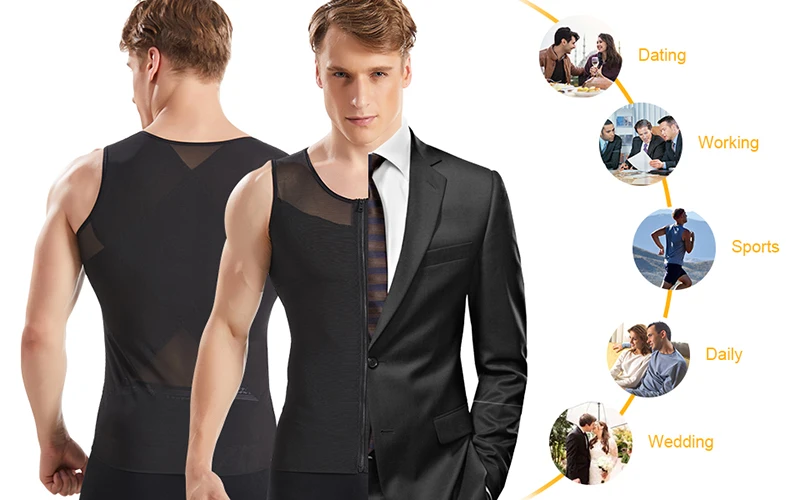 Мужская компрессионная рубашка жилет для лечения ГИНЕКОМАСТИИ рубашка для коррекции фигуры формирователь тела майка спереди корсет с застежкой-молнией для мужчин Корректирующее белье