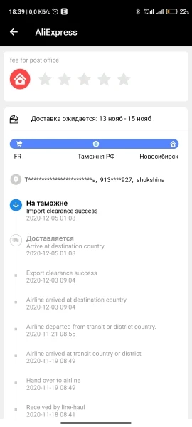 посылка не отслеживается! Спустя более трёх месяцев товар так и не пришёл! Открыла спор, который должен был закончиться 11 марта, но уже 13 число, а возвоата денег так и нет! Больше к этому продавцу ни ногой! не рекомендую его и Вам.