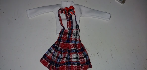 1 комплект, Модная белая рубашка с бантом, клетчатая юбка на подтяжках, платье, повседневная одежда, аксессуары, Одежда для куклы Барби