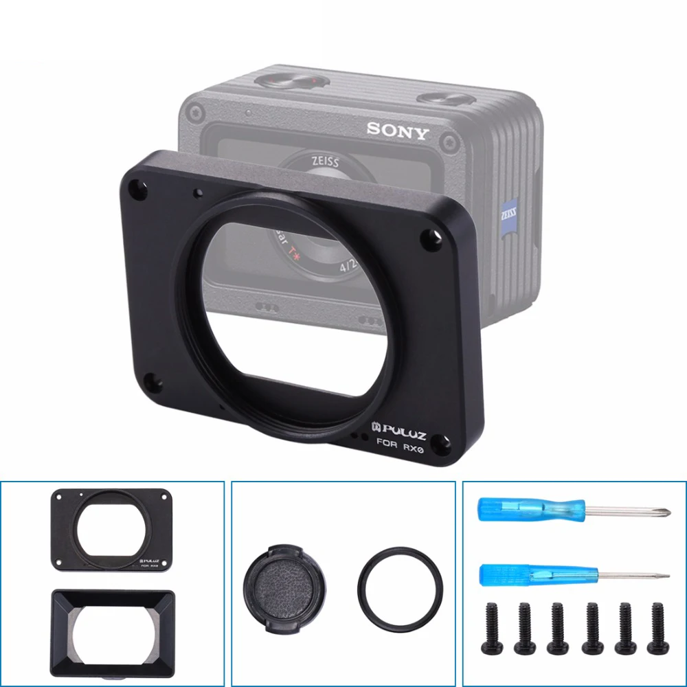 CHICLITS Передняя панель из алюминиевого сплава + 37 мм УФ-фильтр для объектива + солнцезащитный козырек для Sony RX0 RX0 II, с винтами и отвертками