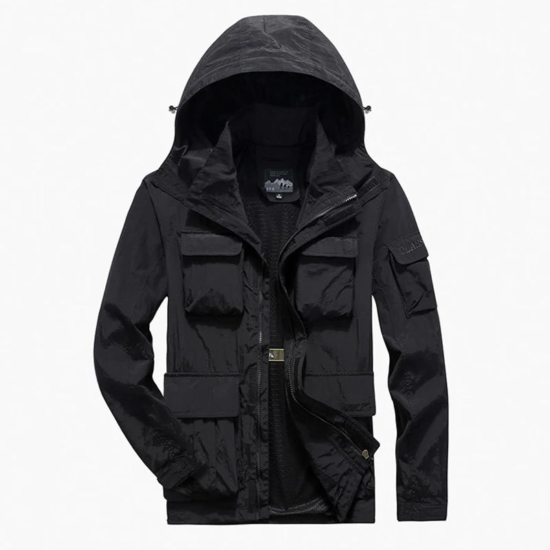 Мужская повседневная куртка, ветровка с капюшоном, с несколькими карманами, верхняя одежда для альпинизма, размеры размера плюс 6XL 7XL, весна-осень