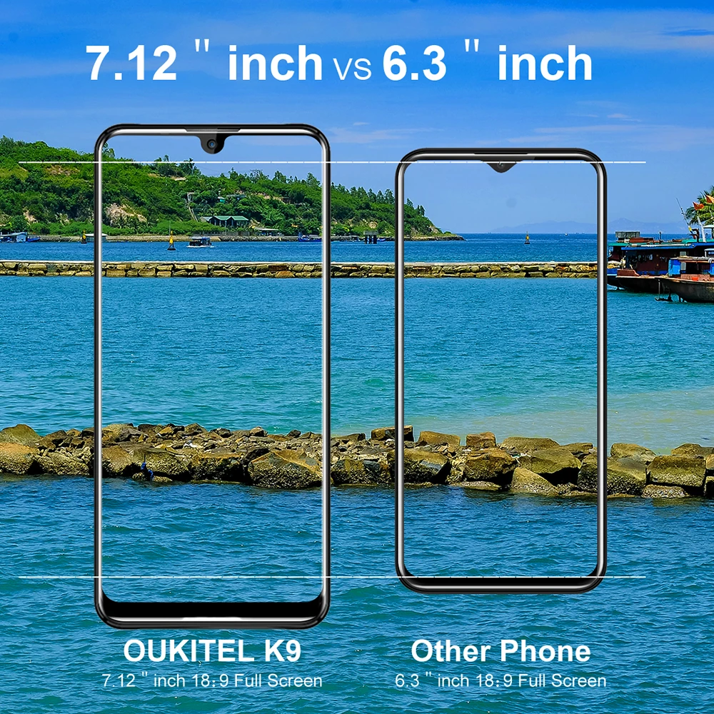 OUKITEL K9 K 9 7,12 "Android 9,0 мобильный телефон 4 Гб 64 Гб MT6765 смартфон 6000 мАч 5 В6A мобильный телефон Восьмиядерный OTG Face ID 8MP16MP