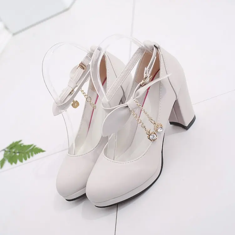 Новинка; Милая обувь в стиле «лолита» с японским бантом на толстой подошве; Цвет бежевый, розовый; Женская обувь для учащихся; Туфли на среднем каблуке; Японские туфли в стиле «лолита»