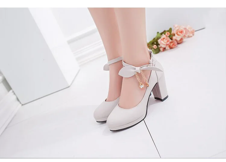 Туфли lolita женские с бантом женская обувь на каблуке с круглым но...