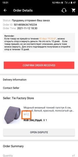 Страна: ES Color: W16 Доставка: Saver Shipping 24.11.2021