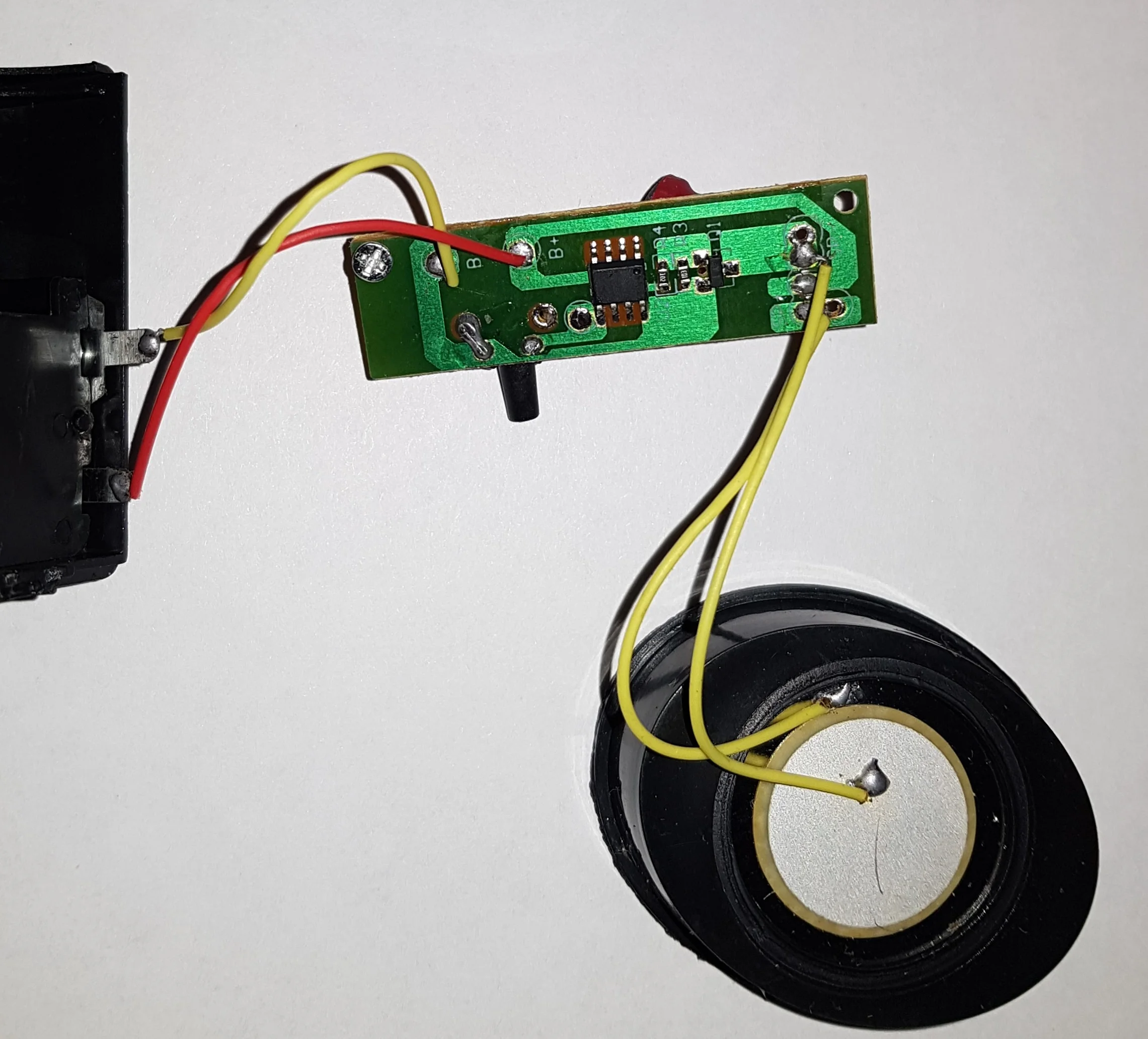 работает от двух мизинчиковых батареек , громко пищит, есть мысли даже немного залепить чем-нибудь